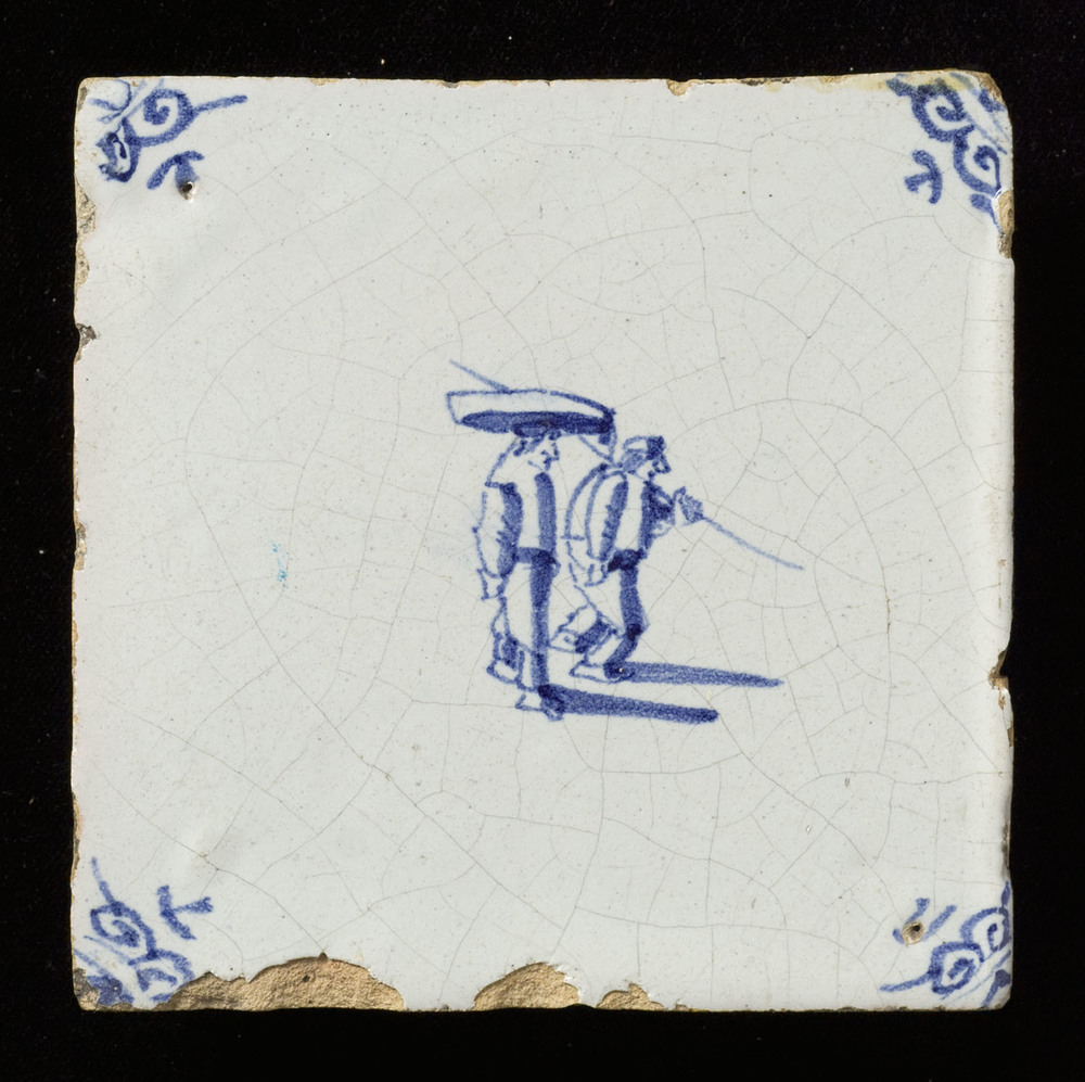 Tegel van keramiek, tinglazuur, voorstellende een be...