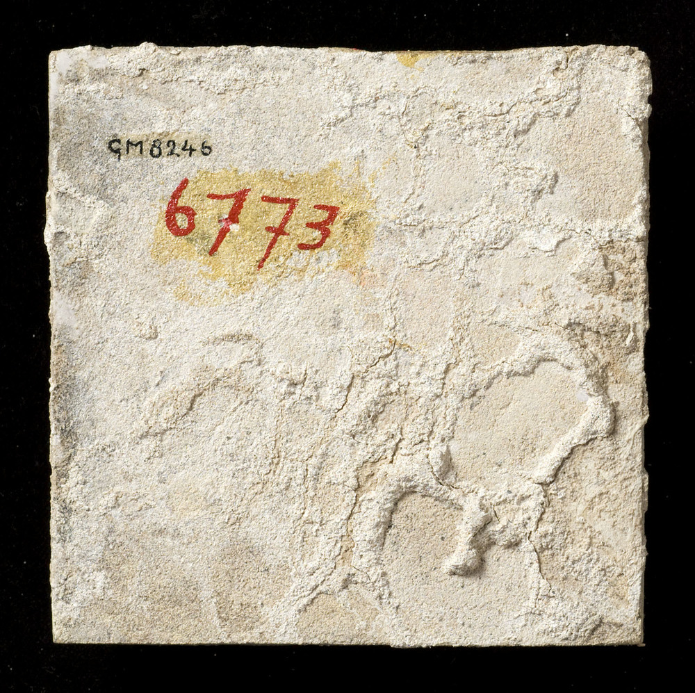 Tegel van keramiek, tinglazuur, gesprenkeld, voorste...