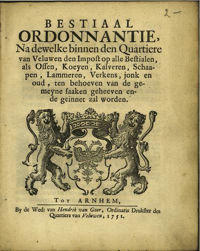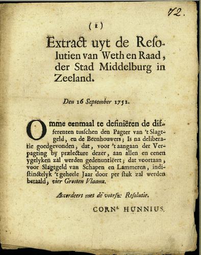 Plakkaat accijns op beestiaal, 1752