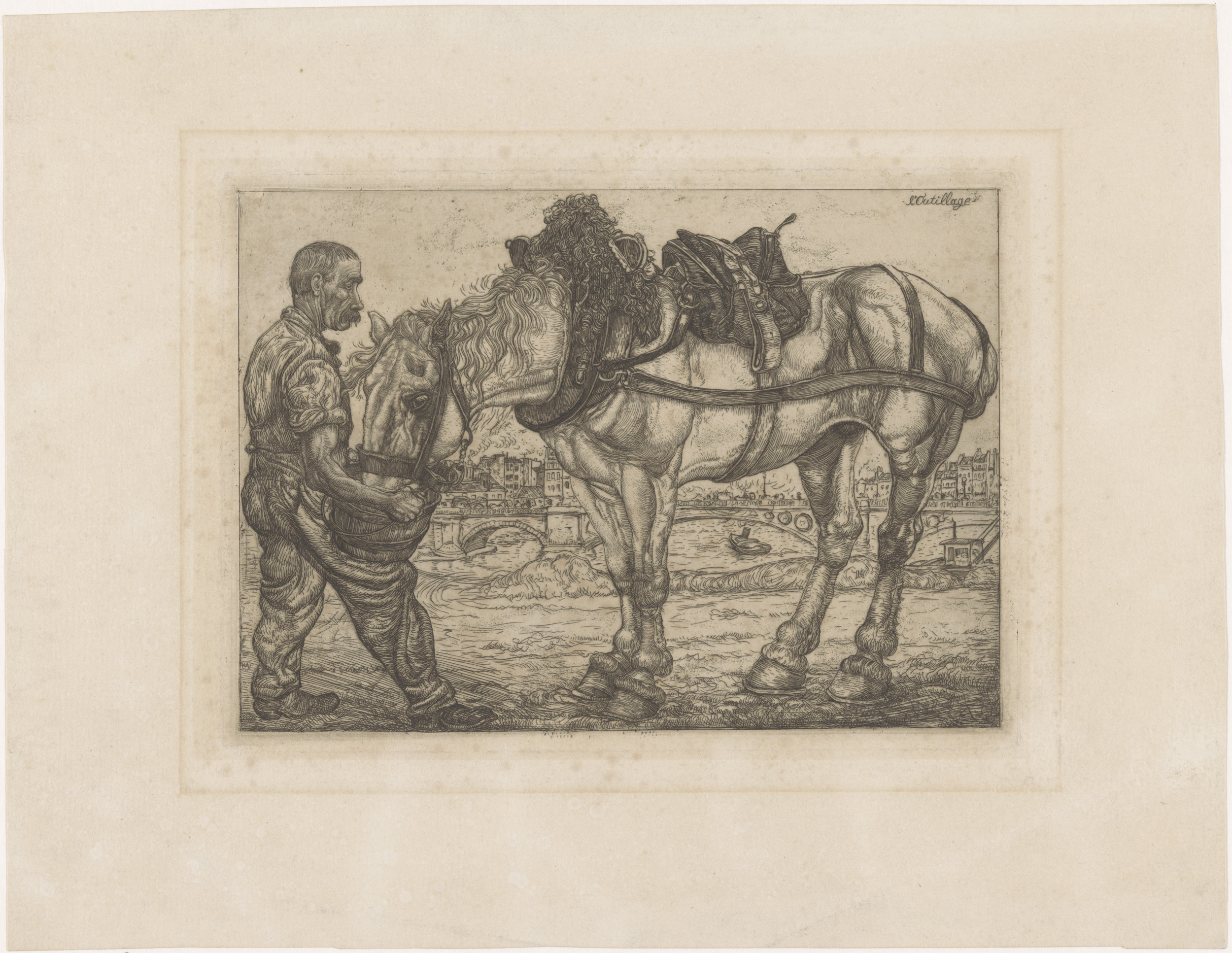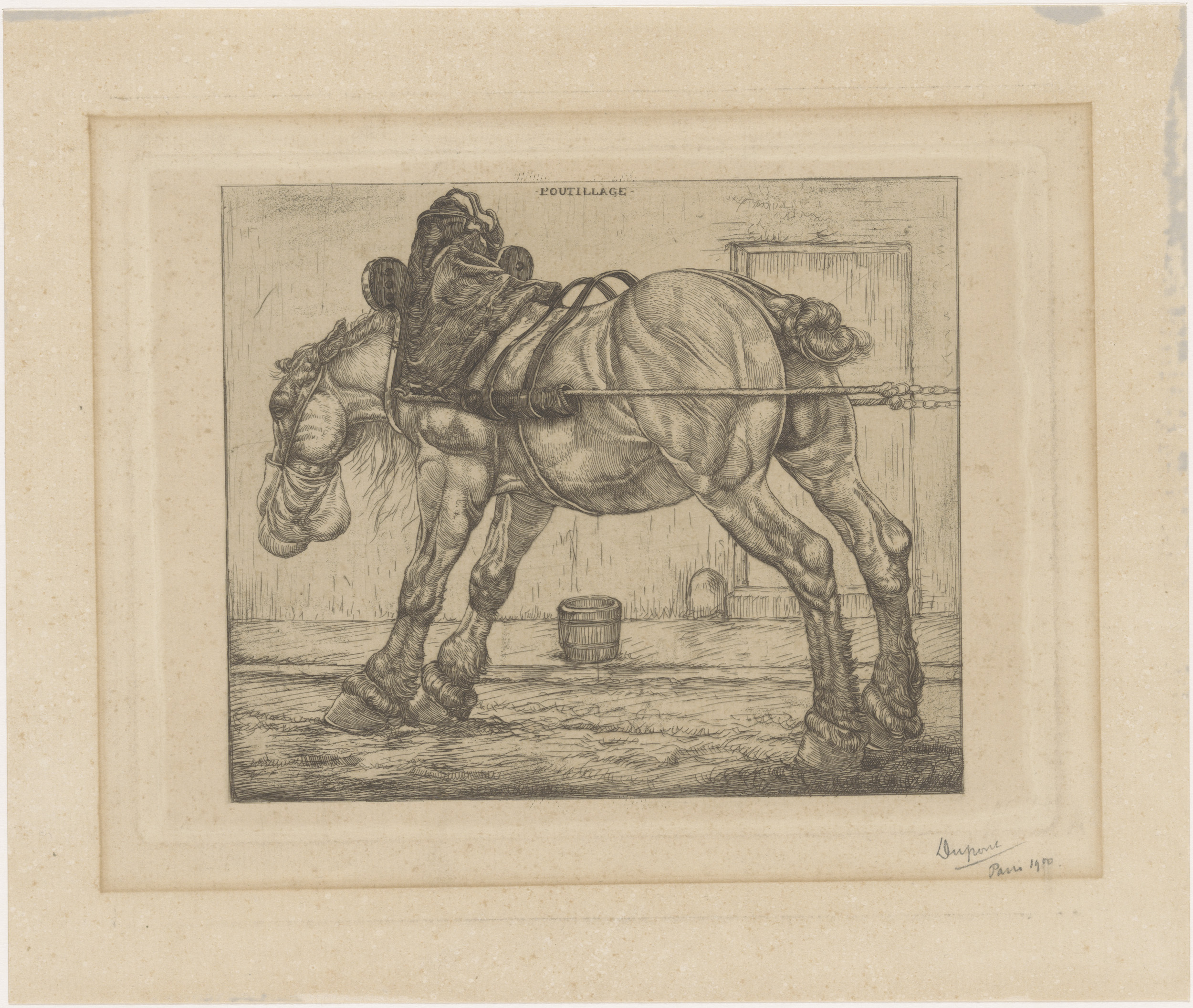 Trekpaard met haverzak