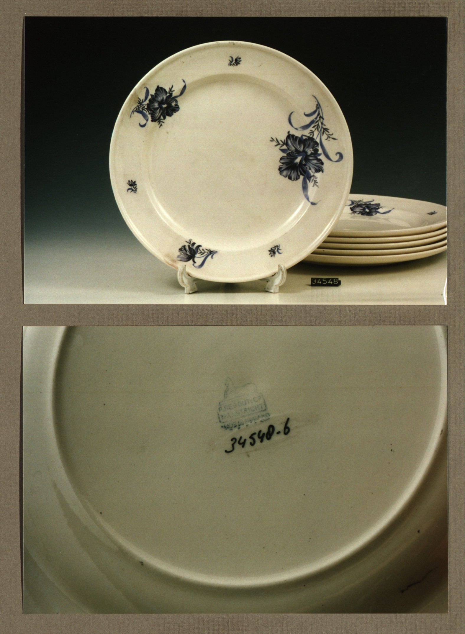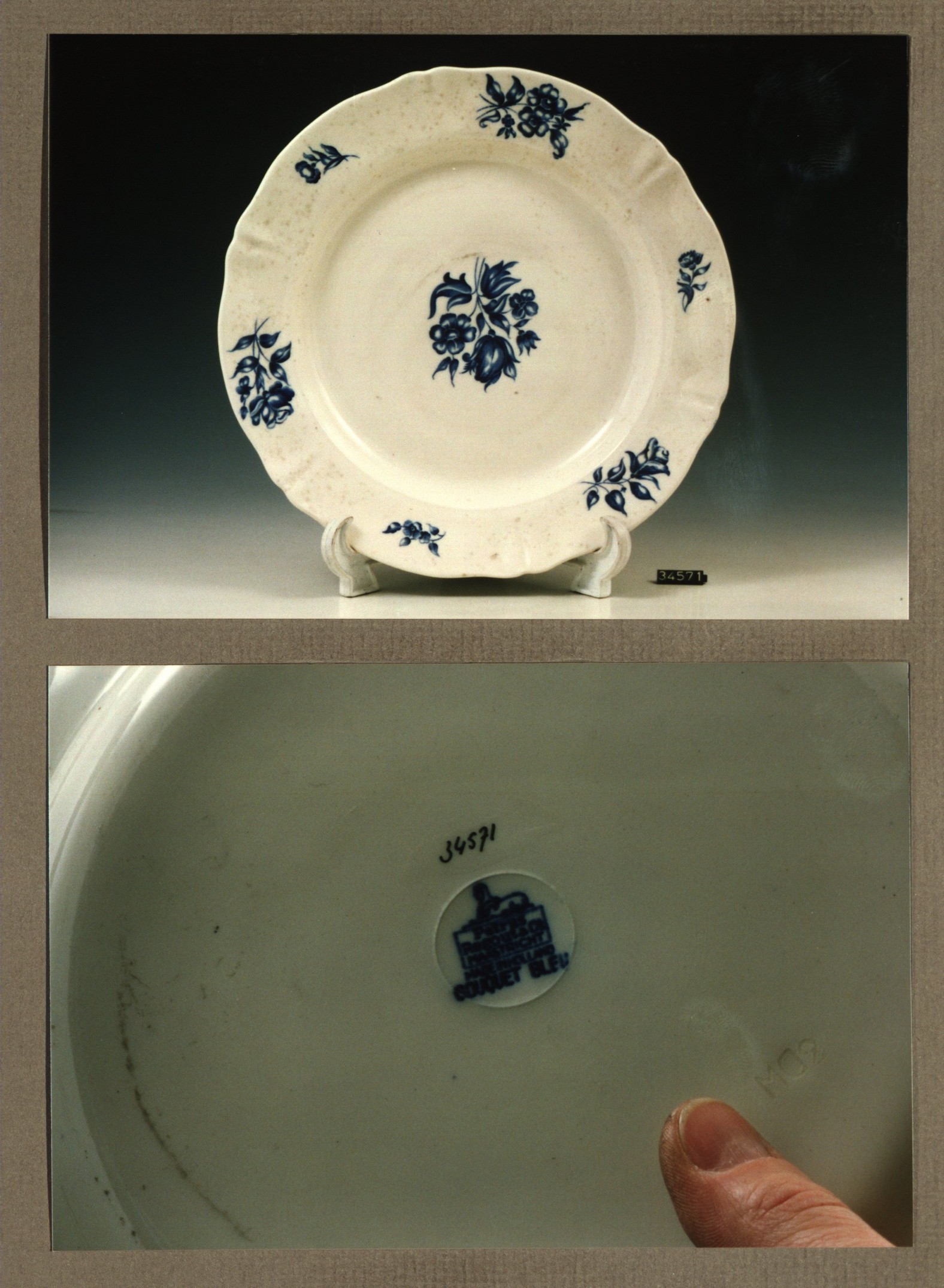 Plat bord, model Dominique met decor Bouquet bleu