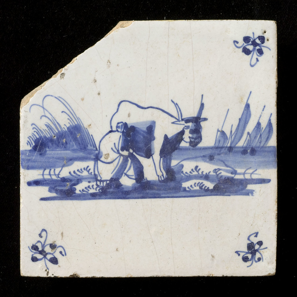 tegel van aardewerk met tinglazuur, voorstellende: h...