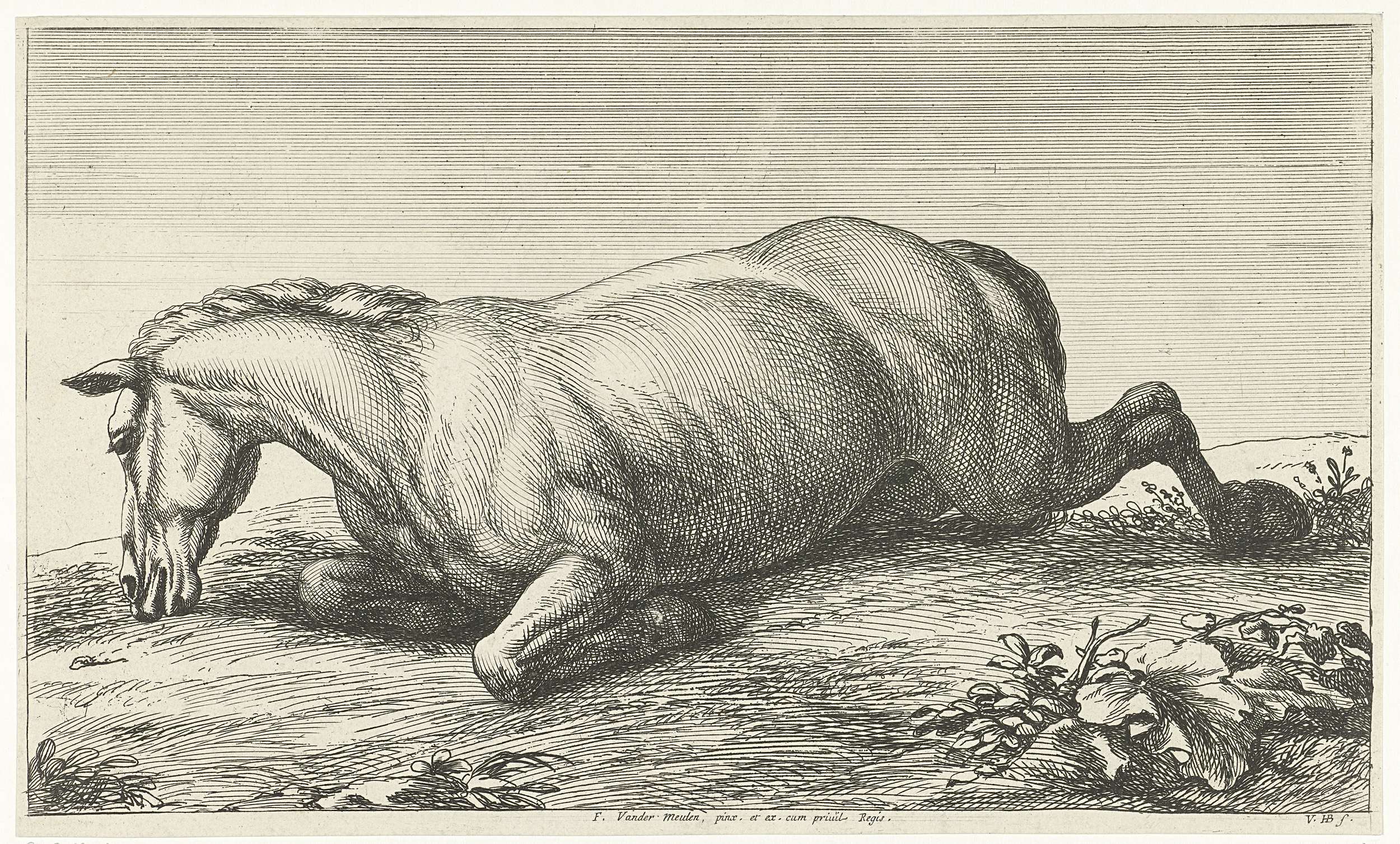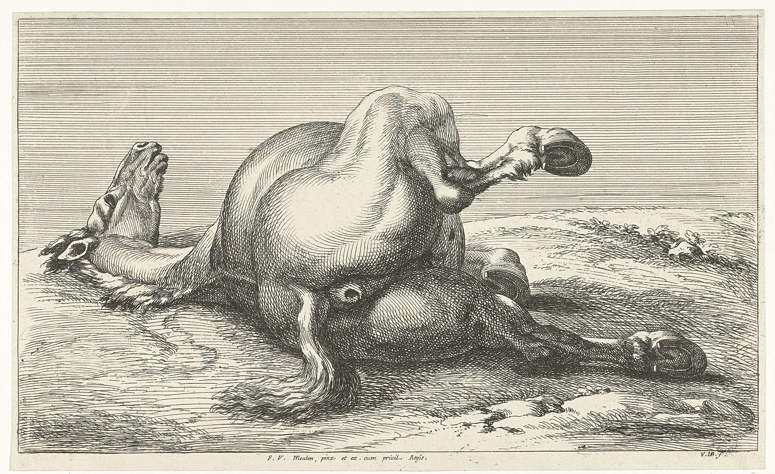 Gesneuveld paard op de buik liggend