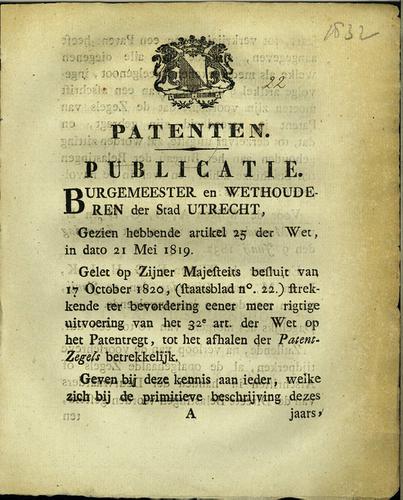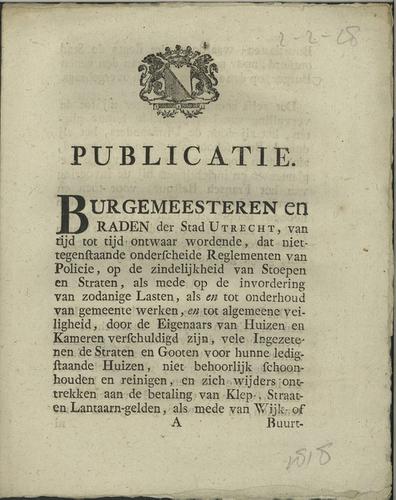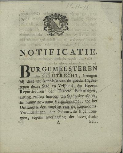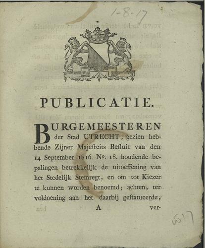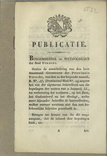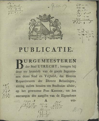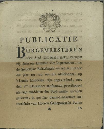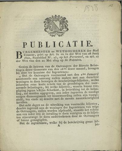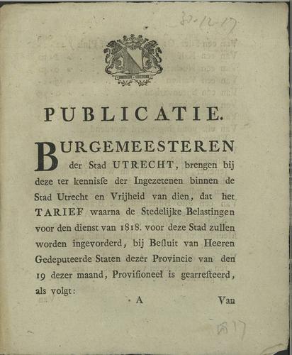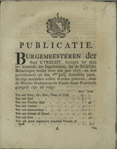 Plakkaat, stedelijke belastingen, Utrecht, 1816