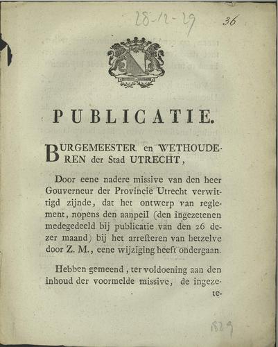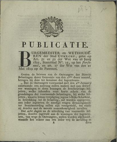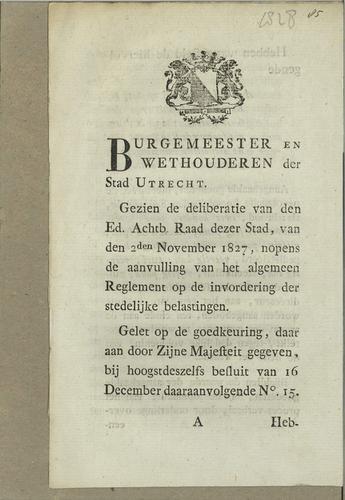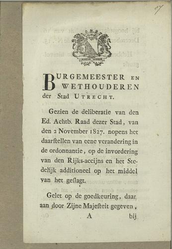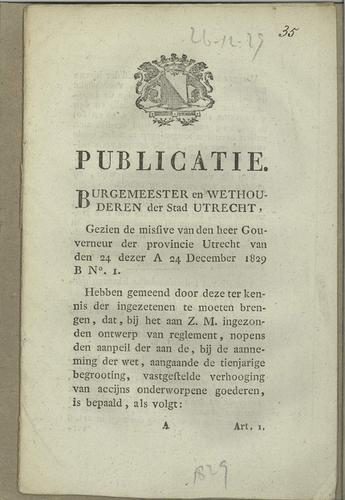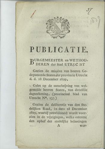 Plakkaat, stedelijke belastingen, Utrecht, 1829