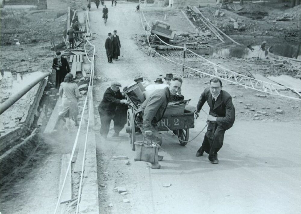 Herbouw van de verwoeste IJsselbrug te Zutphen