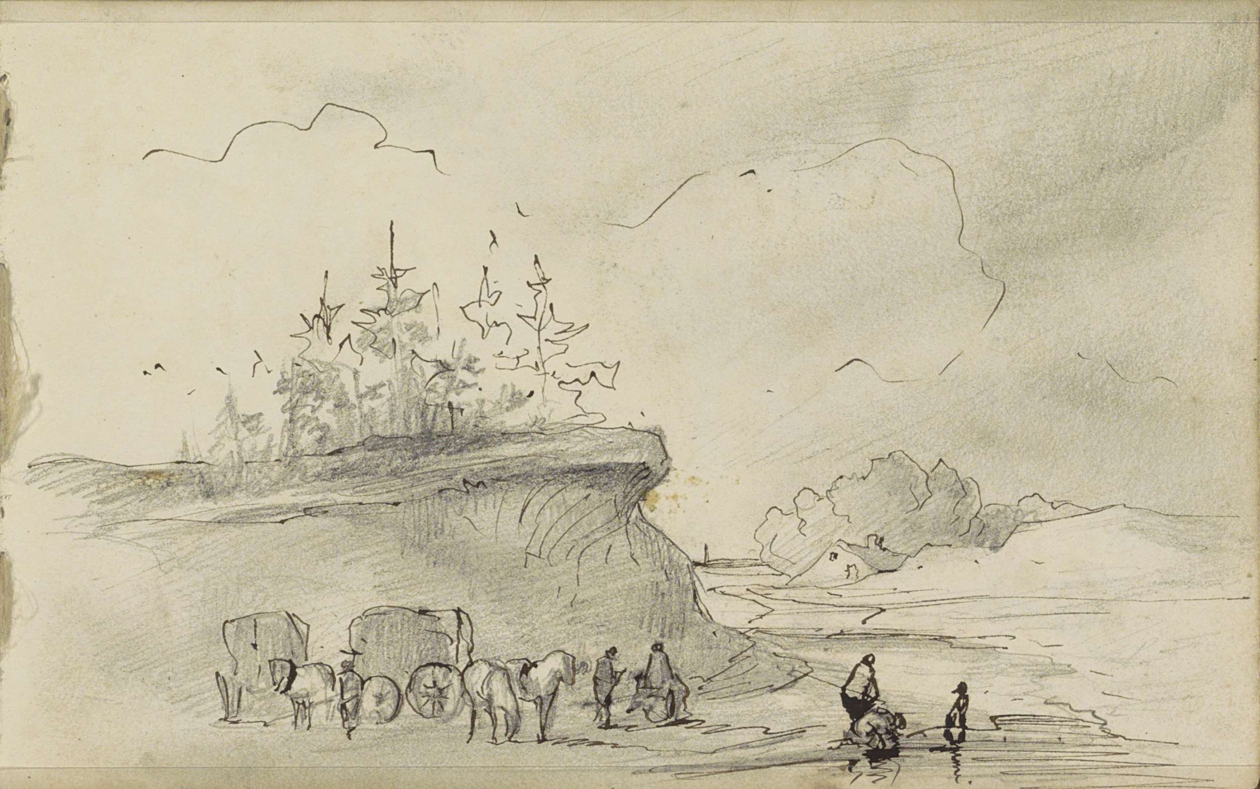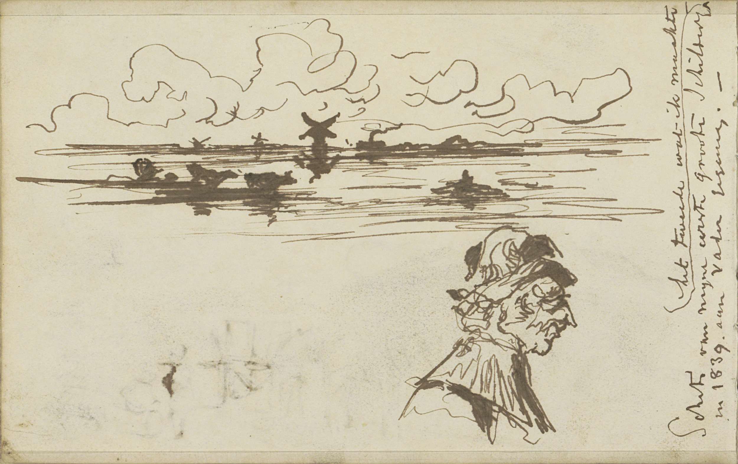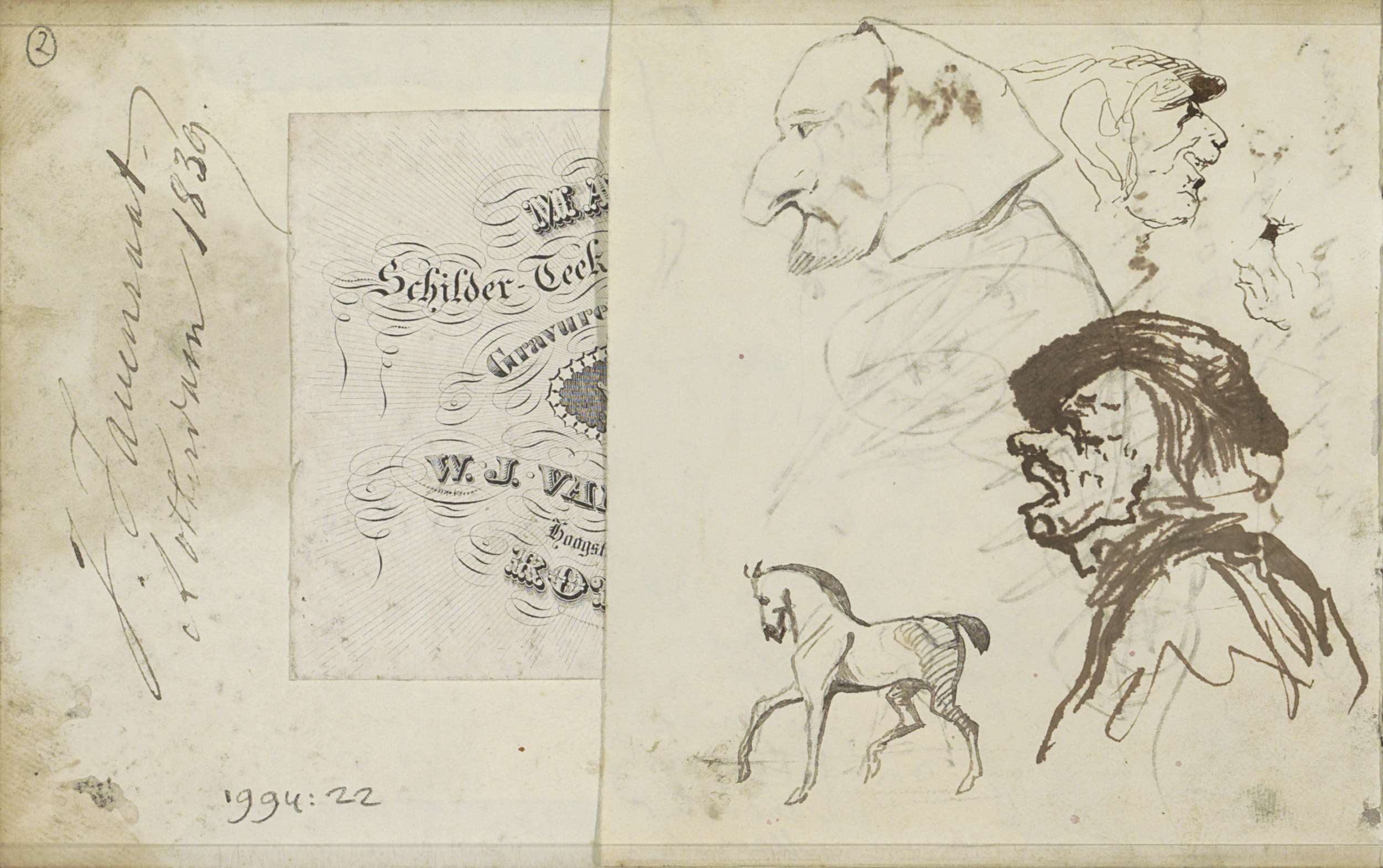 Studieblad, onder andere met een jager en landschap ...
