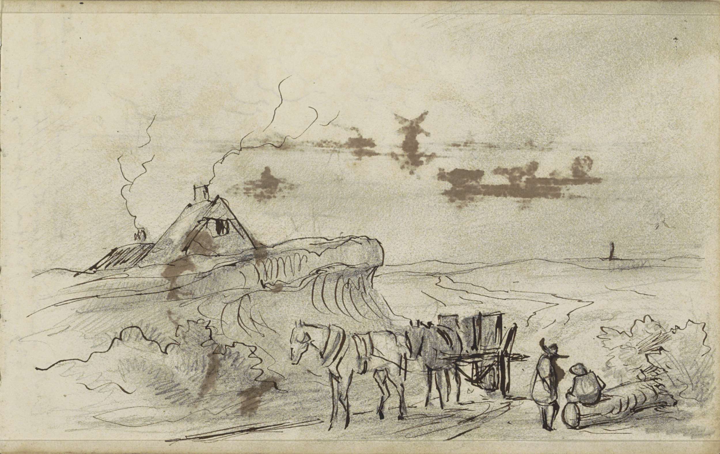 Landschap met paarden en karren