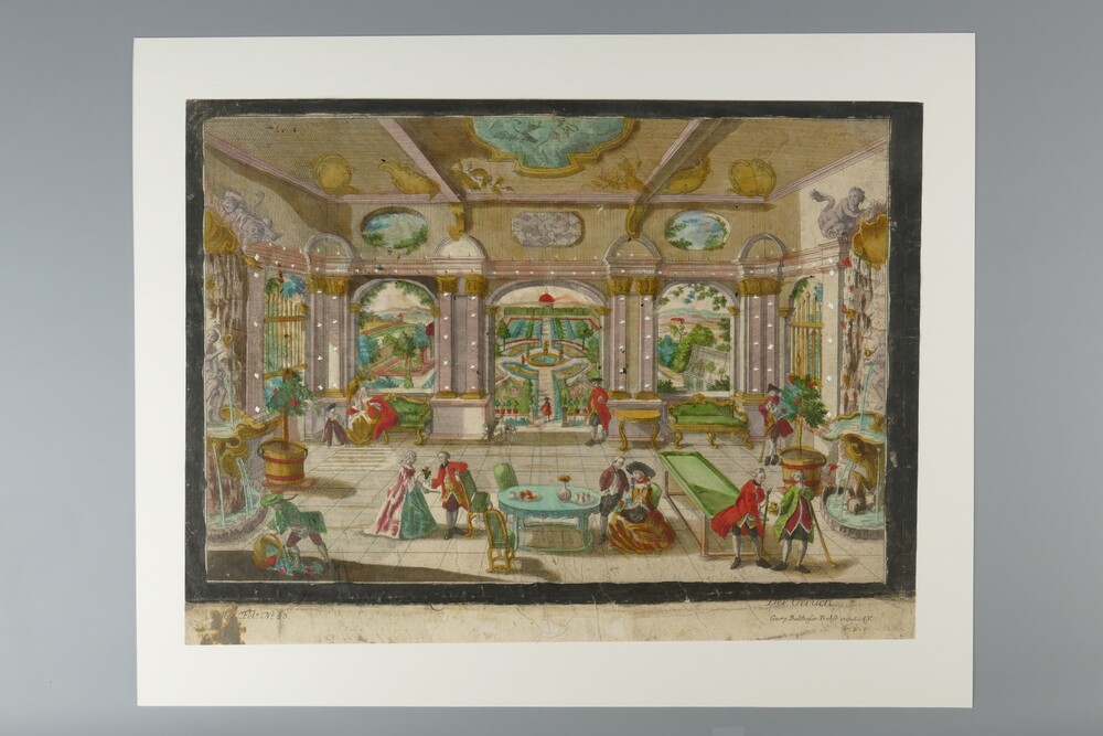 opticaprent, voorstellend grote zaal met diverse per...