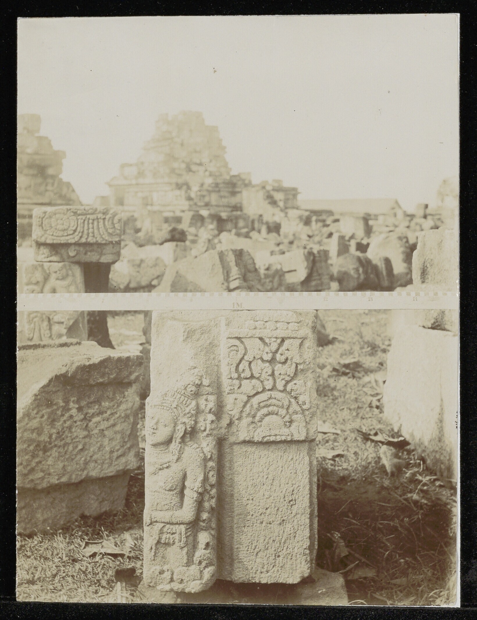 Foto uit een doos met beelden van Candi Prambanan