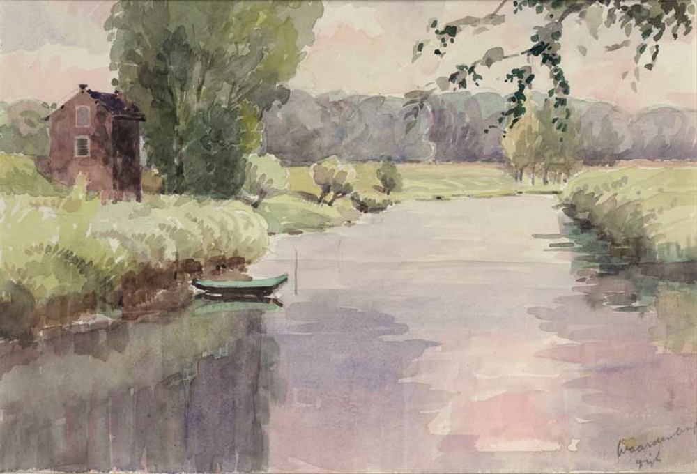 Aquarel, voorstellende gezicht op de strang bij Waar...
