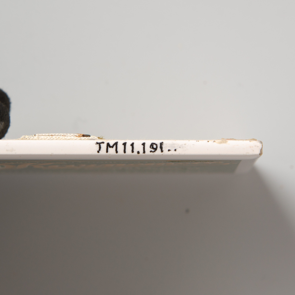 Siertegeltje van aardewerk in lijstje met een voorst...