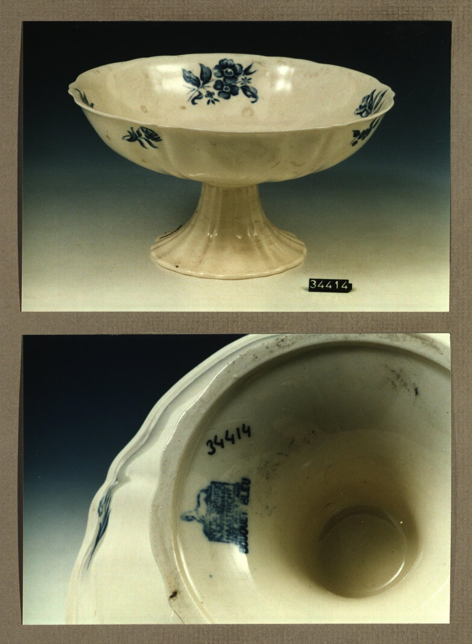 Schaal op voet, model Dominique met decor Bouquet bleu