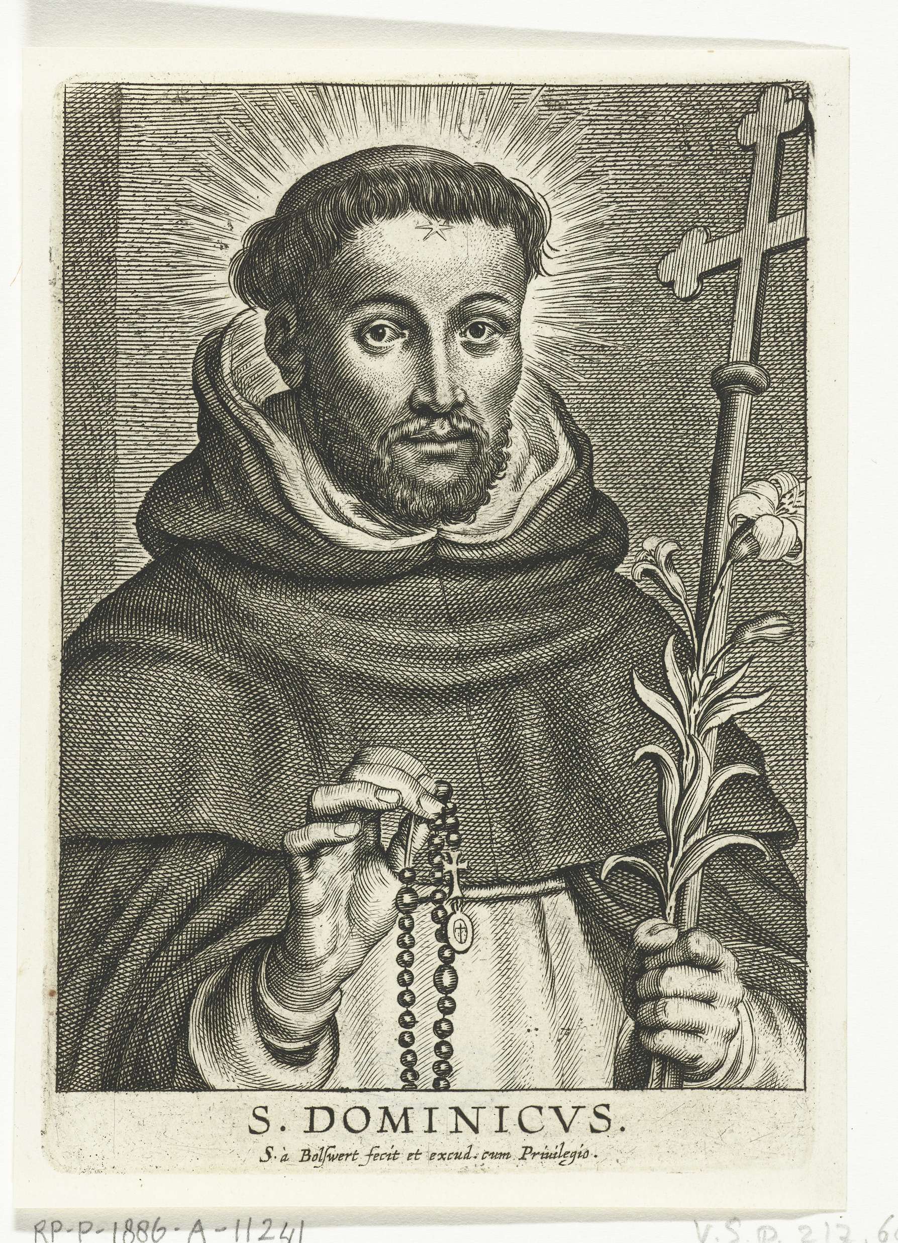 Heilige Dominicus met rozenkrans en lelie