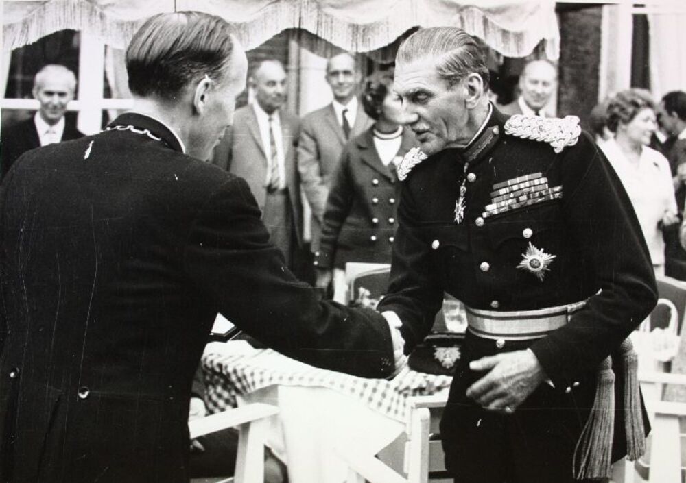 Zwart-wit foto van het koningspaar Vos van de schutt...