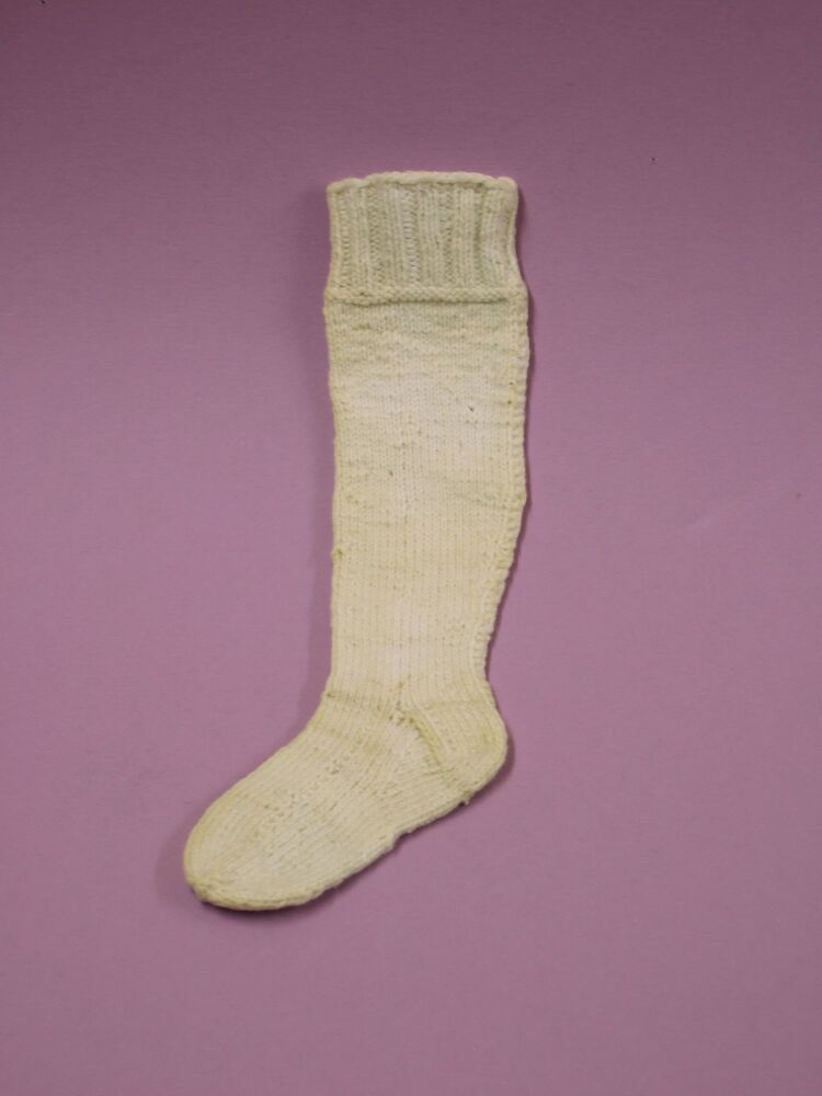 kniekous van katoen, gebreid door M. v. Hof in 1915