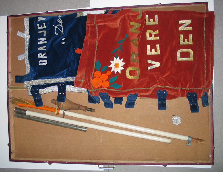 Set vaandels Oranjevereniging in kist