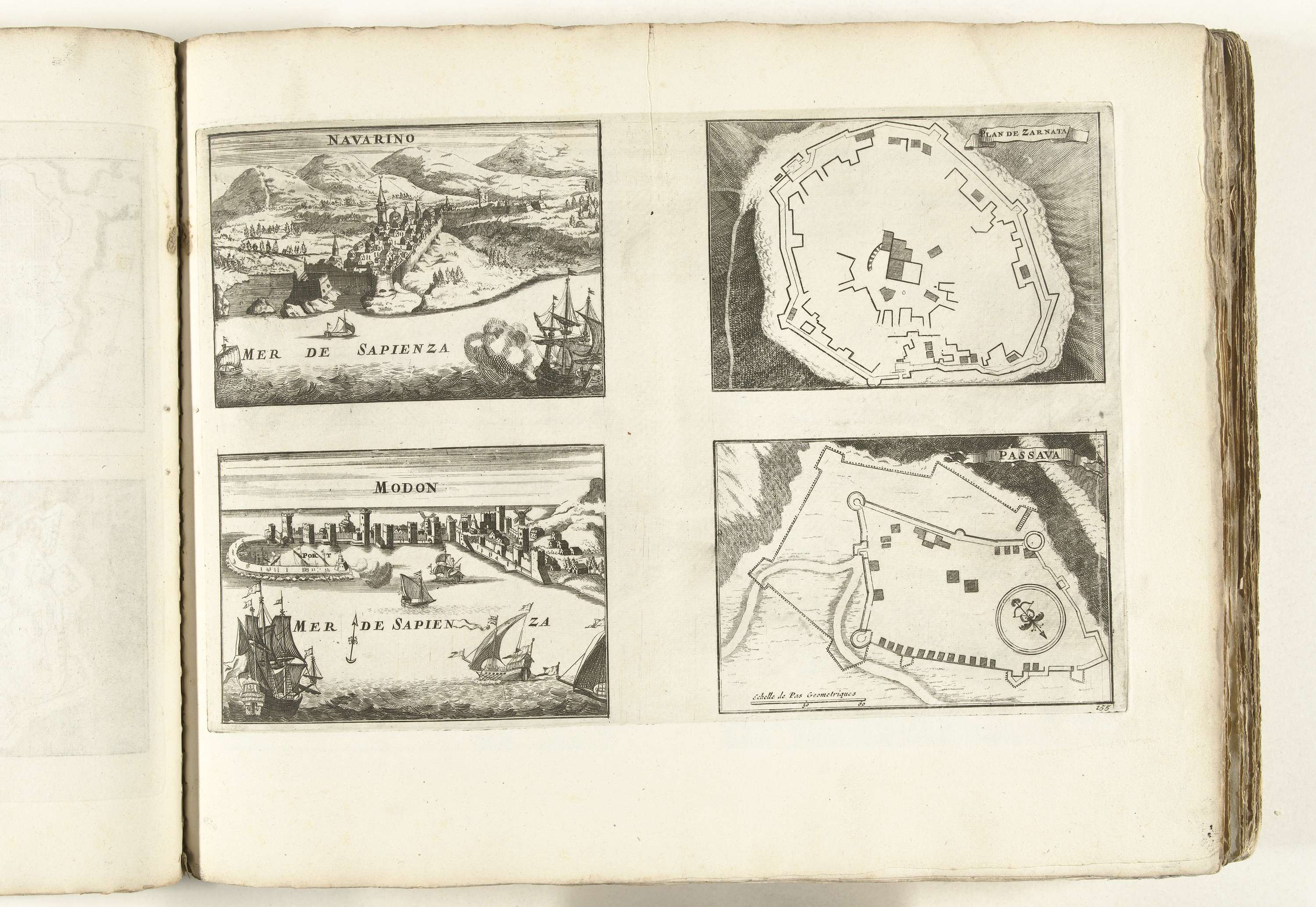 Plattegronden en gezichten op Pílos, Zarnata, Modon ...