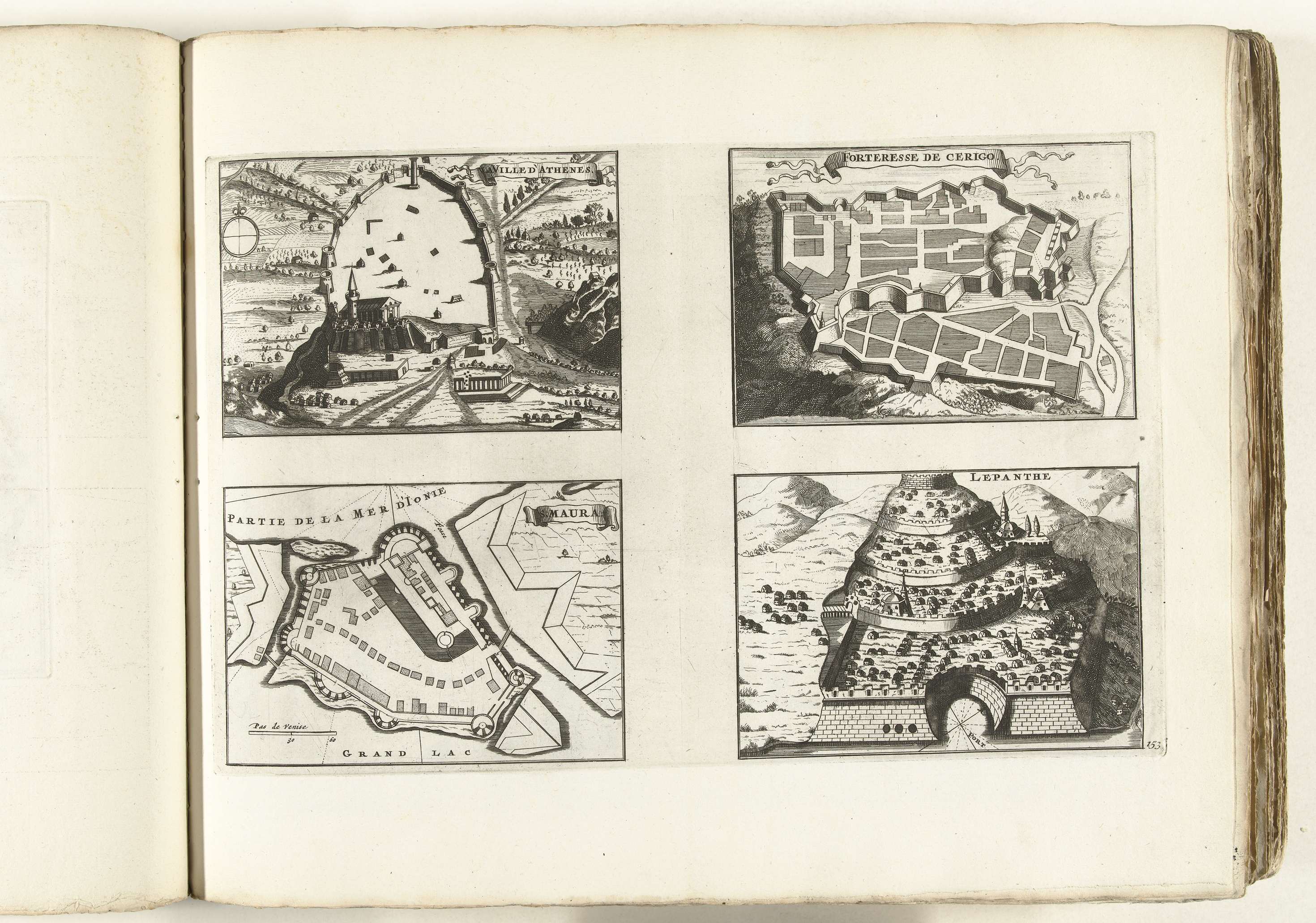 Plattegronden en gezichten op Griekse forten, ca. 1702