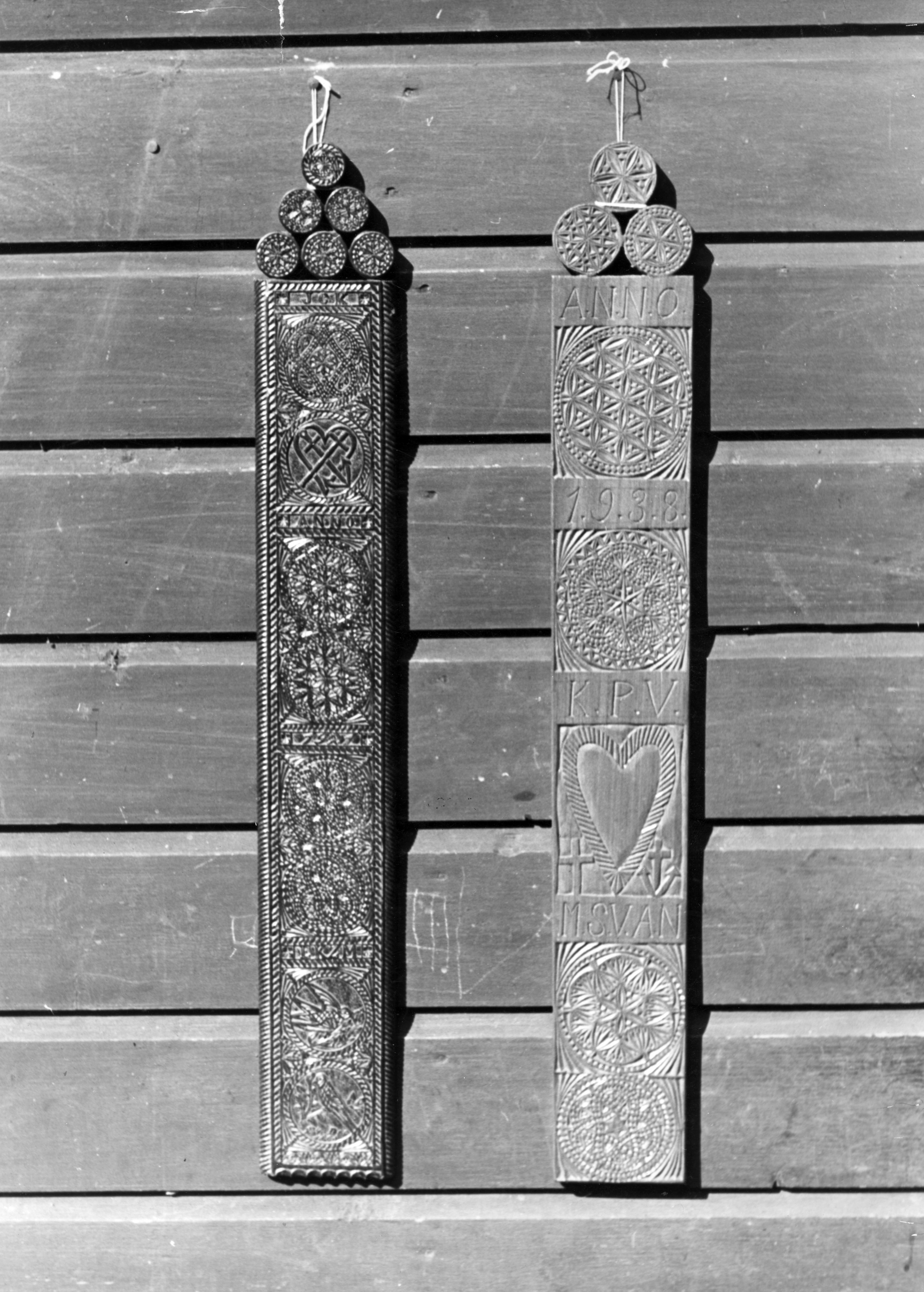 Twee mangelplanken, Marken, 1943 (zwart-wit foto)