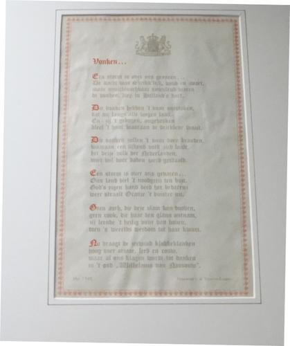 Rijmprent “Vrij ter herinnering aan de Bevrijding”,