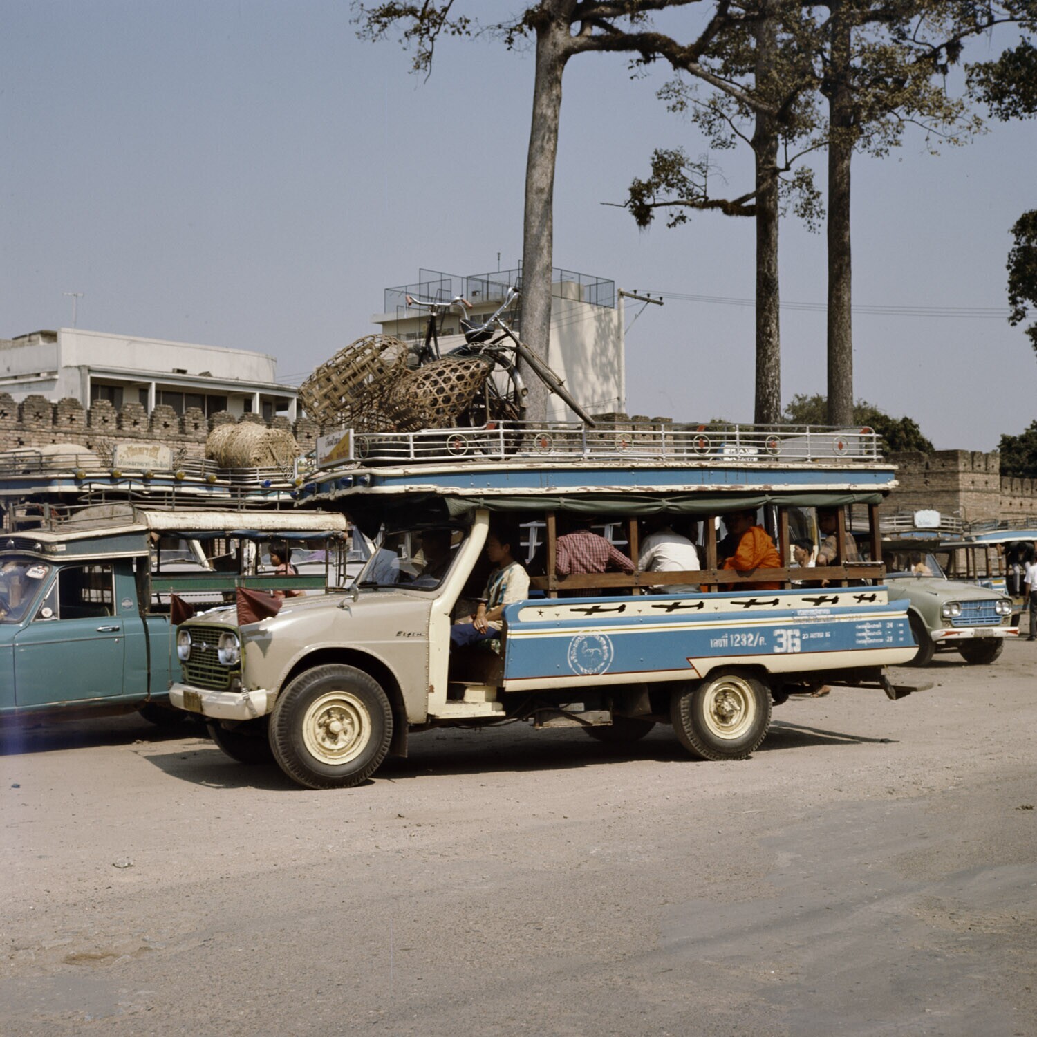 Op het busstation van Chiang Mai. Een volgeladen bus...