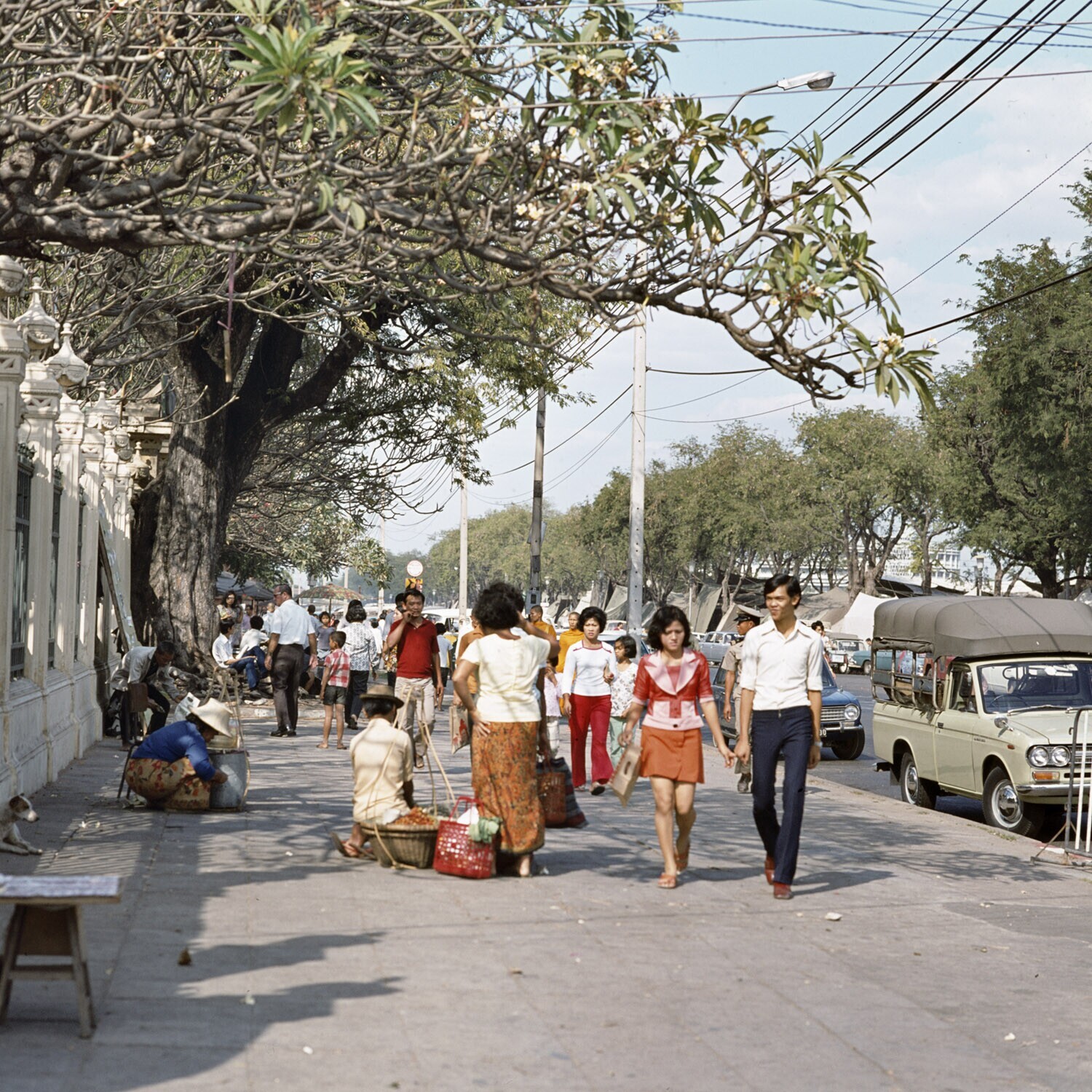 Bangkok Straat langs de zgn Phra Mane Ground,het ter...