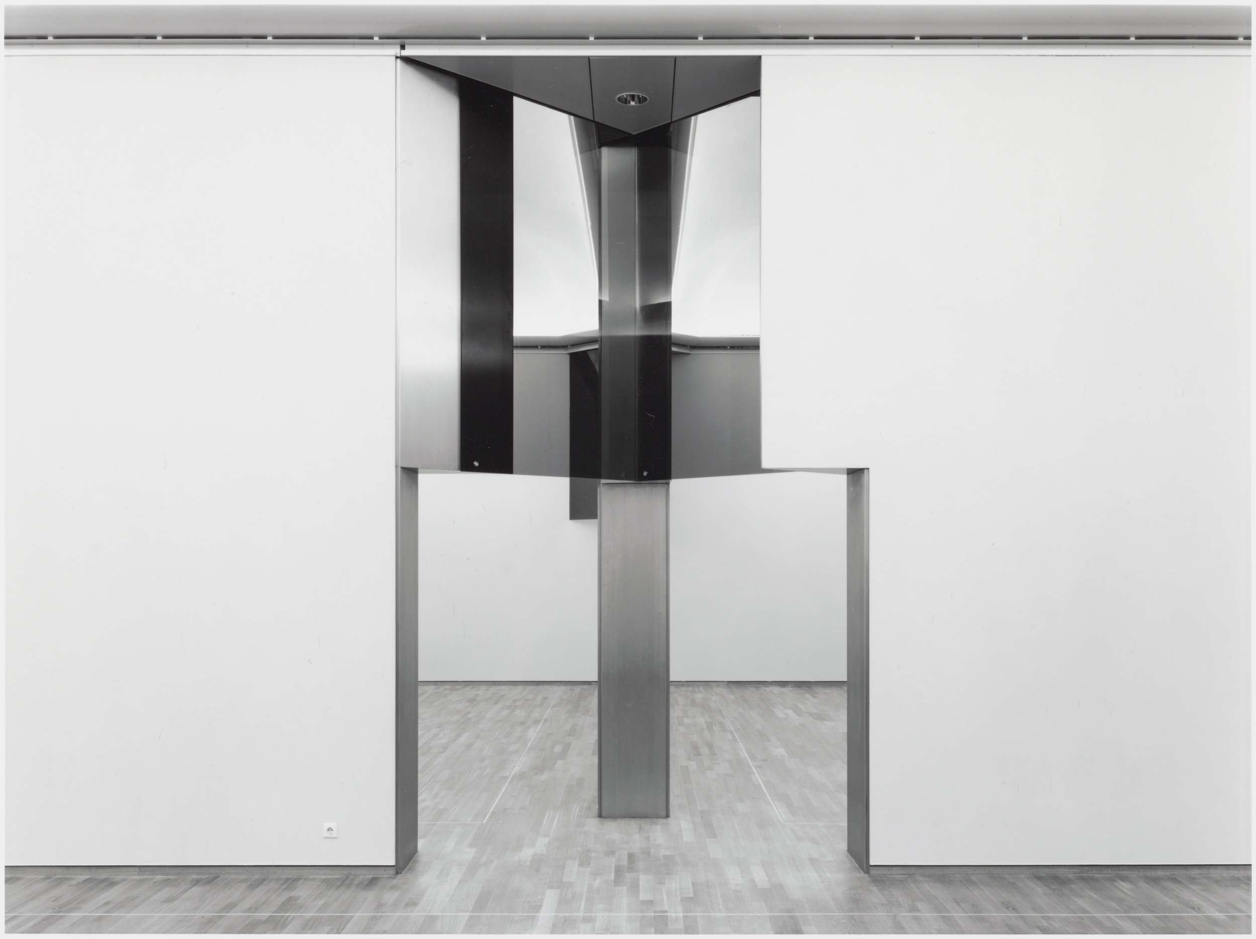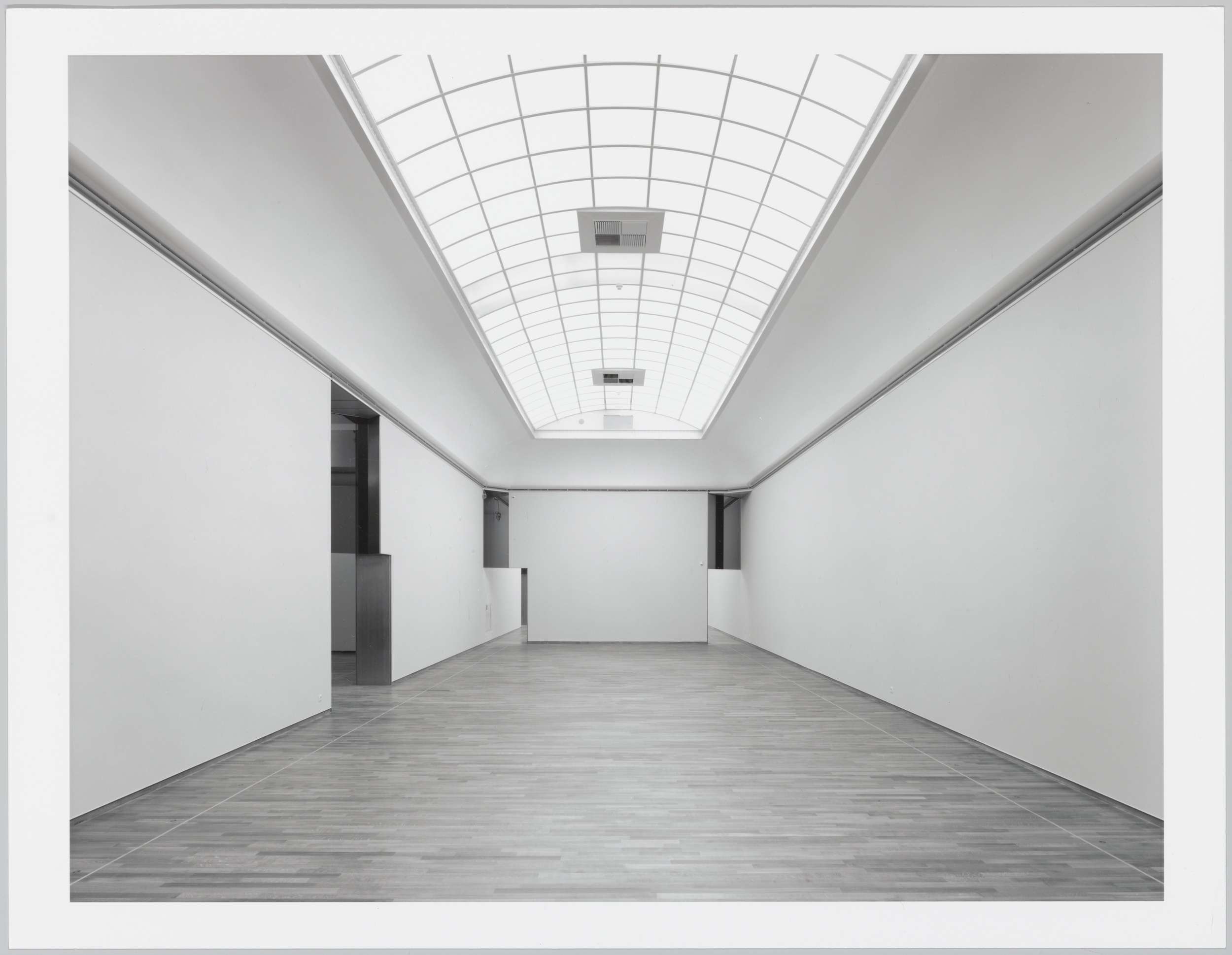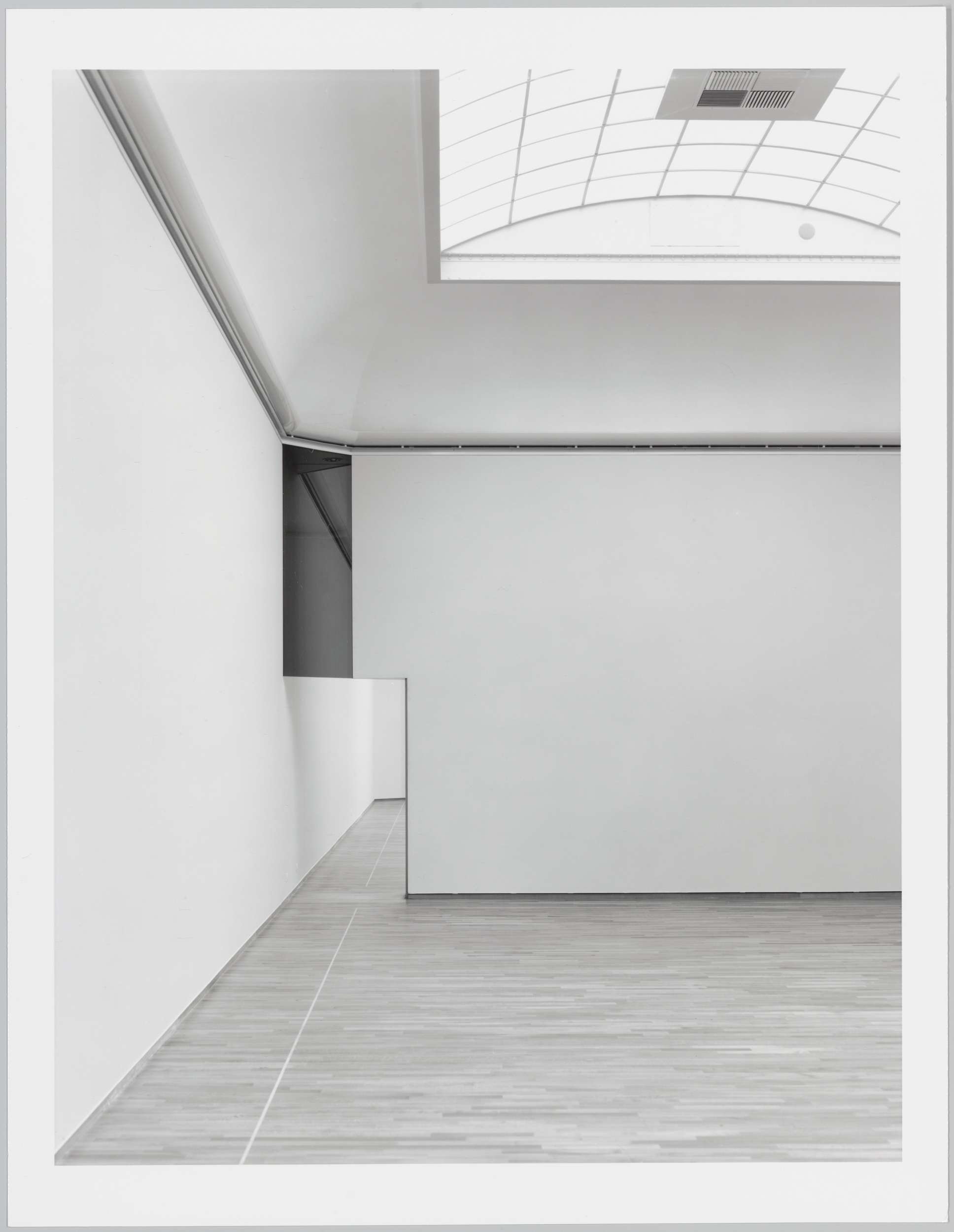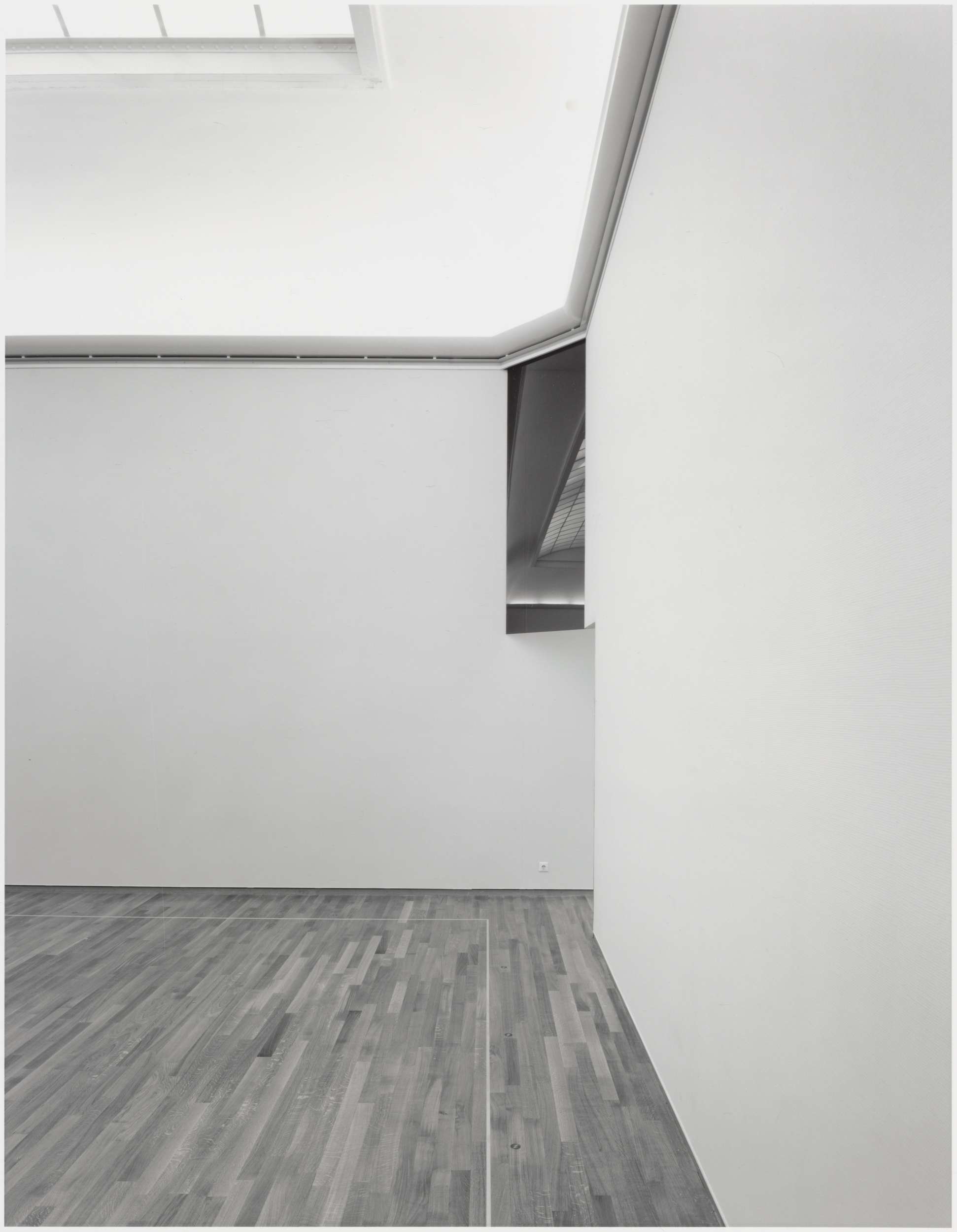 Doorkijk naar zaal met tussenwand van opzij gezien