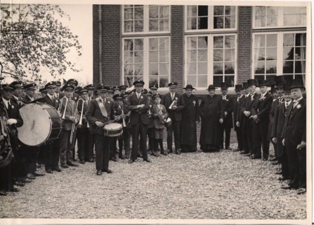 Fanfare met 25-jarige jubilaris pastoor P.A. Brekelmans