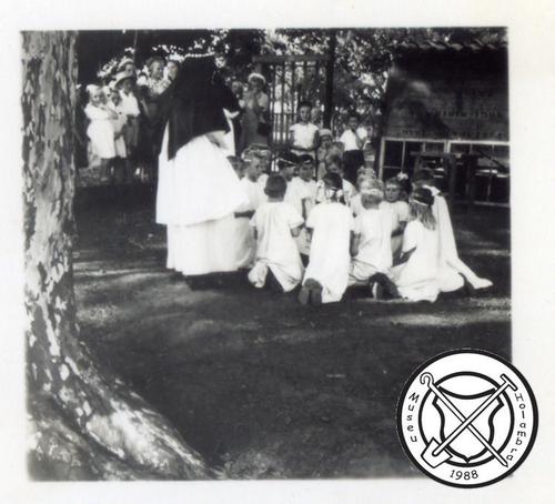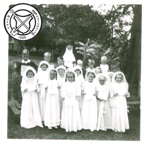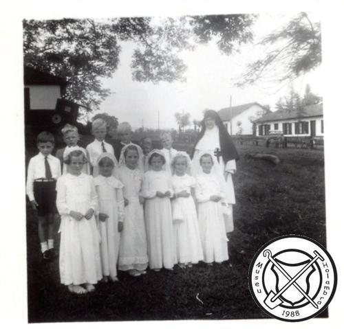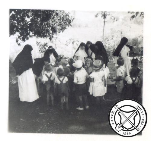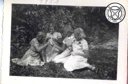 V.l.n.r., staand: mevr. Groot; mevr. Derks; mevr. Bruins; pater Paulinus; mevr. Schoenmaker; mevr. Clijsters; mevr. Bakker; mevr. van Schaik; mevr. J. de Wit; V.l.n.r., gehurkt: Cis Bos; Margriet Clijsters; Dina Eltink; Maria Jeuken. (2)