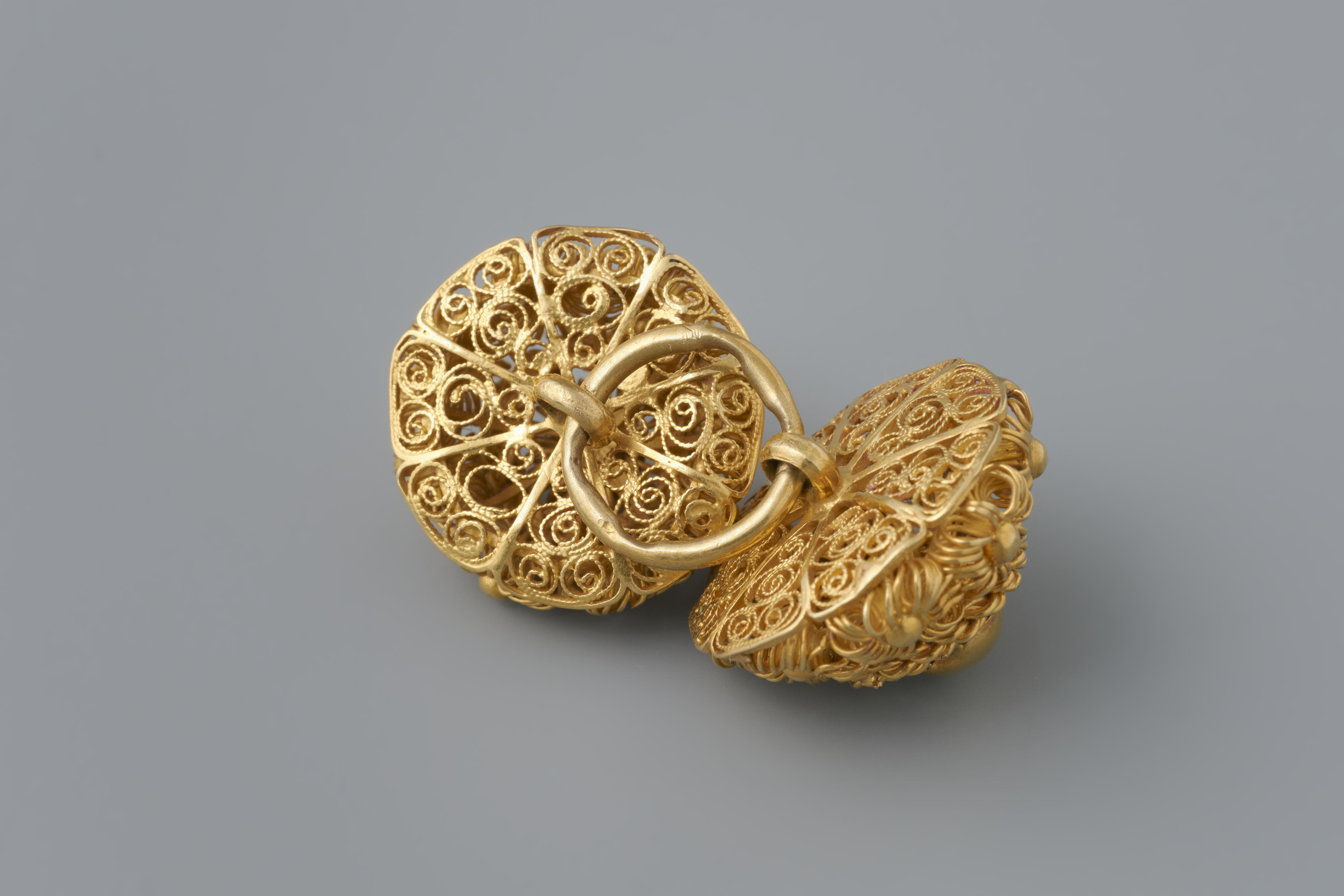 Paar gouden keelknopen, Zuid-Beveland, 1825–1850