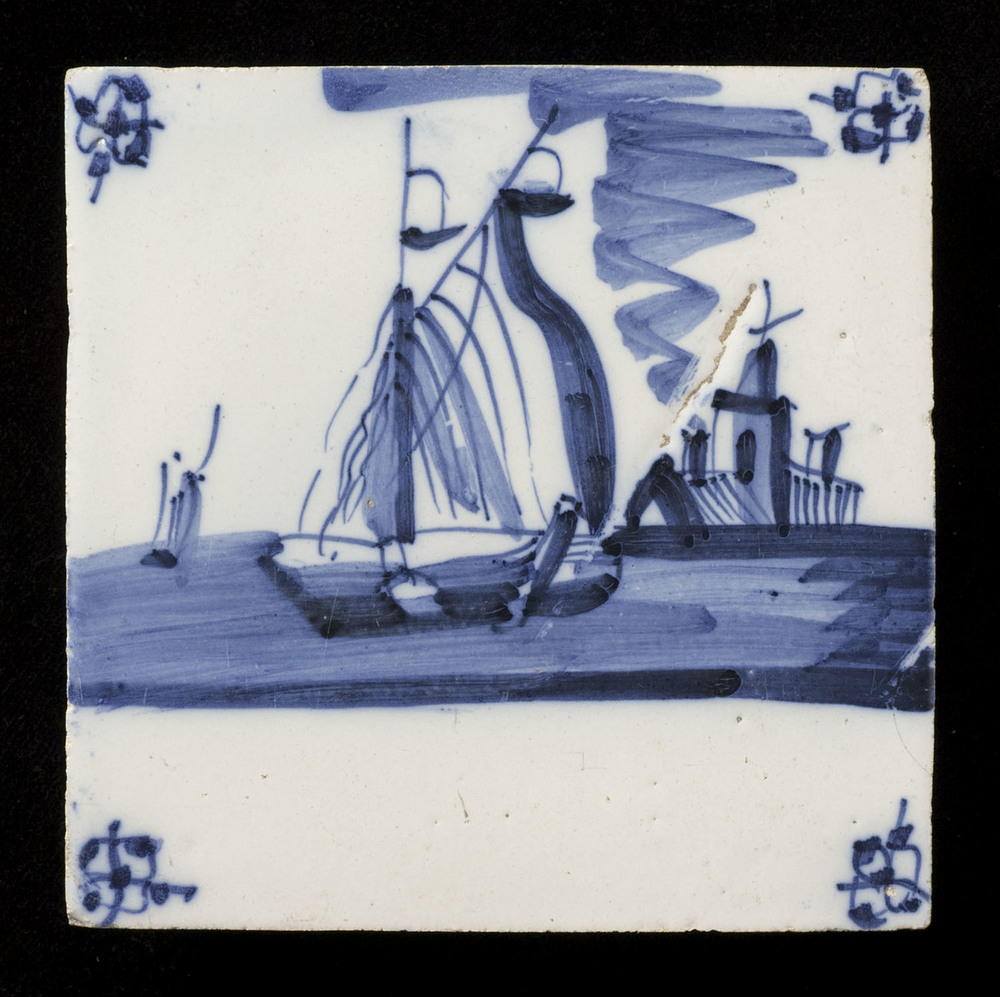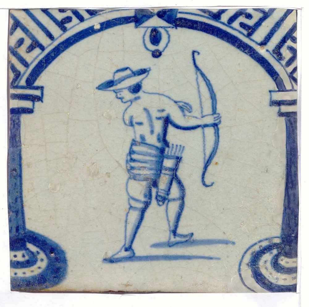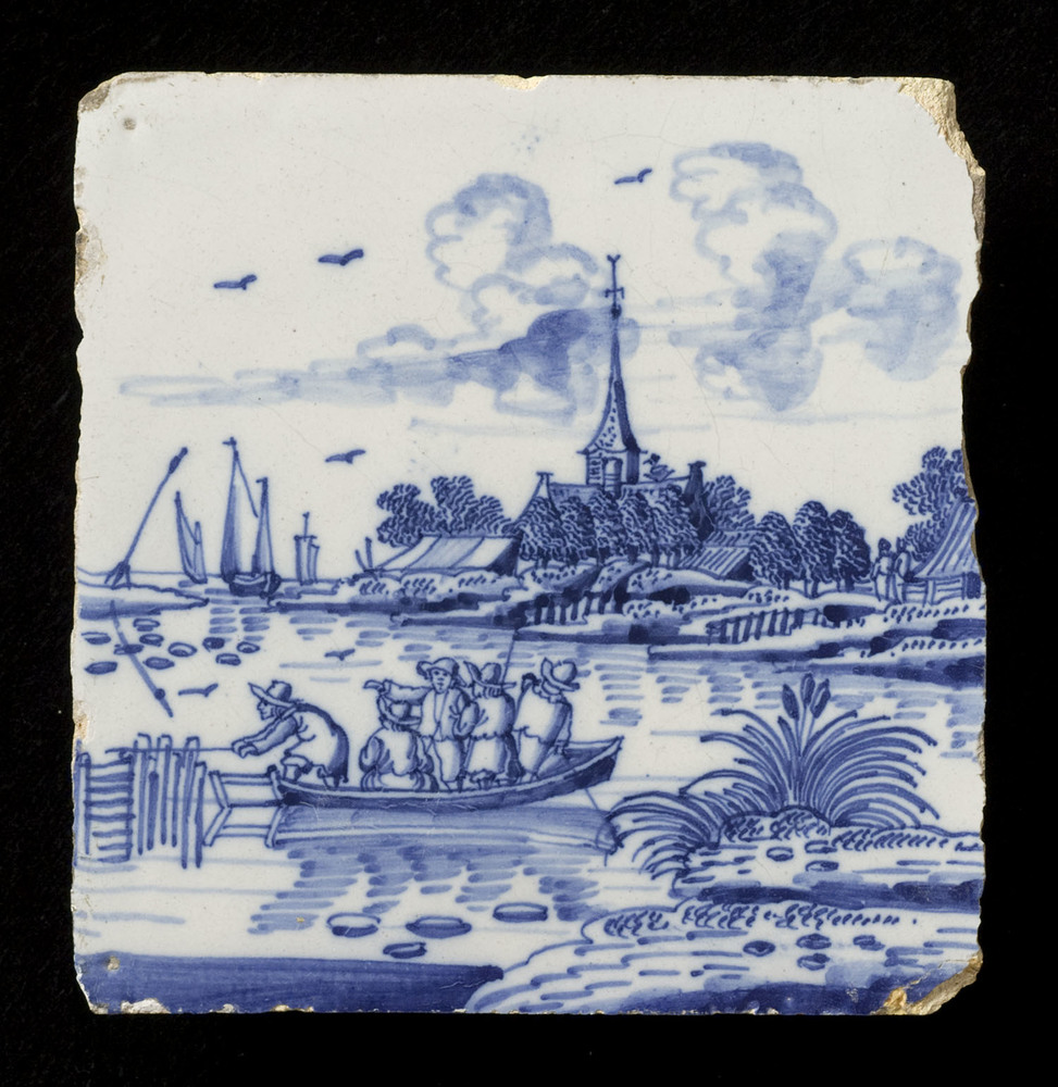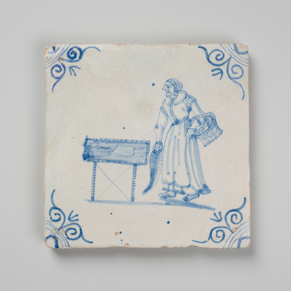 tegel van aardewerk met tinglazuur, voorstellende: w...