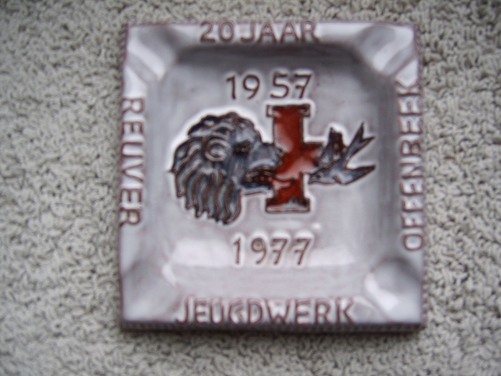 Asbak in reliëf, met voorstelling: leeuw met Rode Kr...