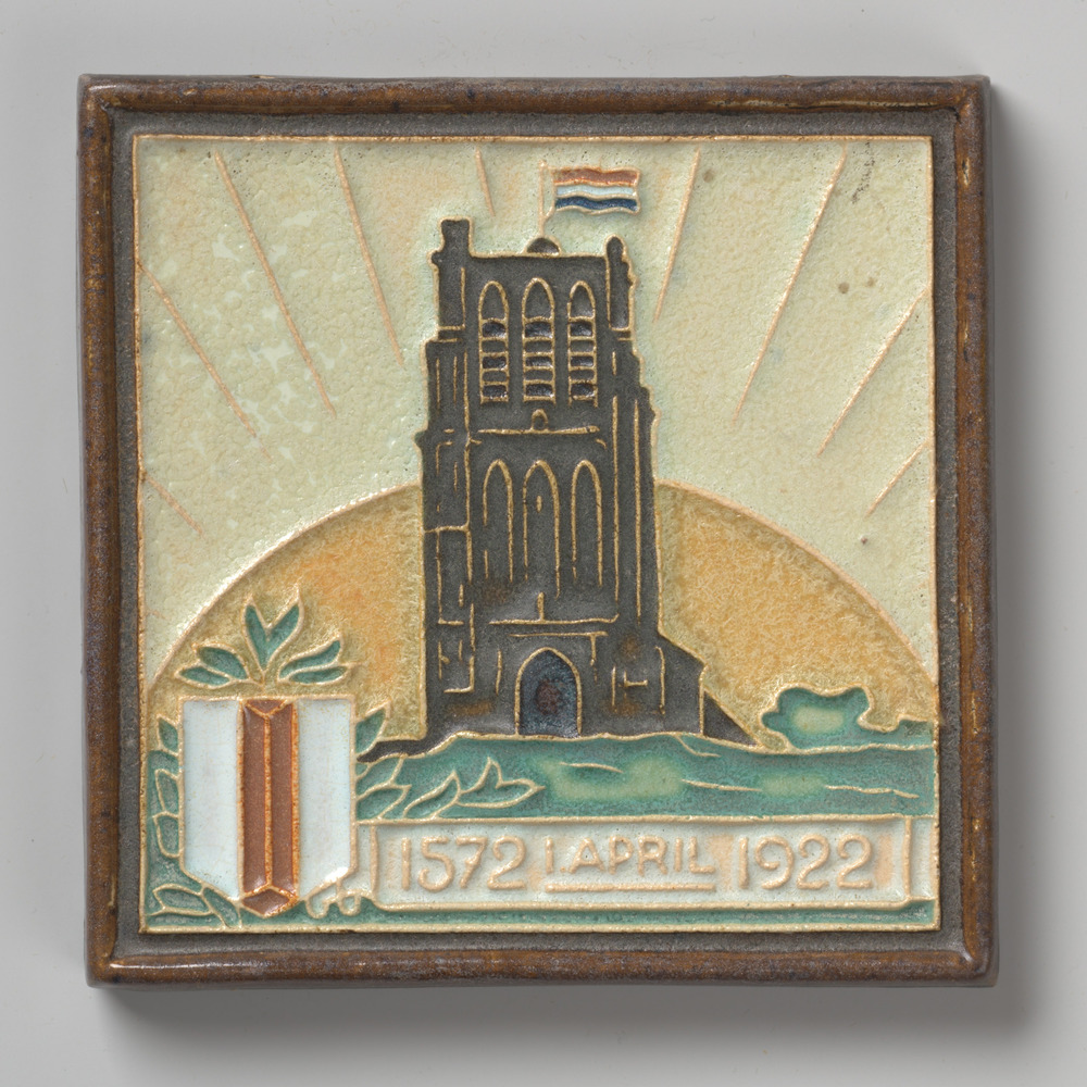 Tegel in cloisonné-techniek, met voorstelling: Den B...
