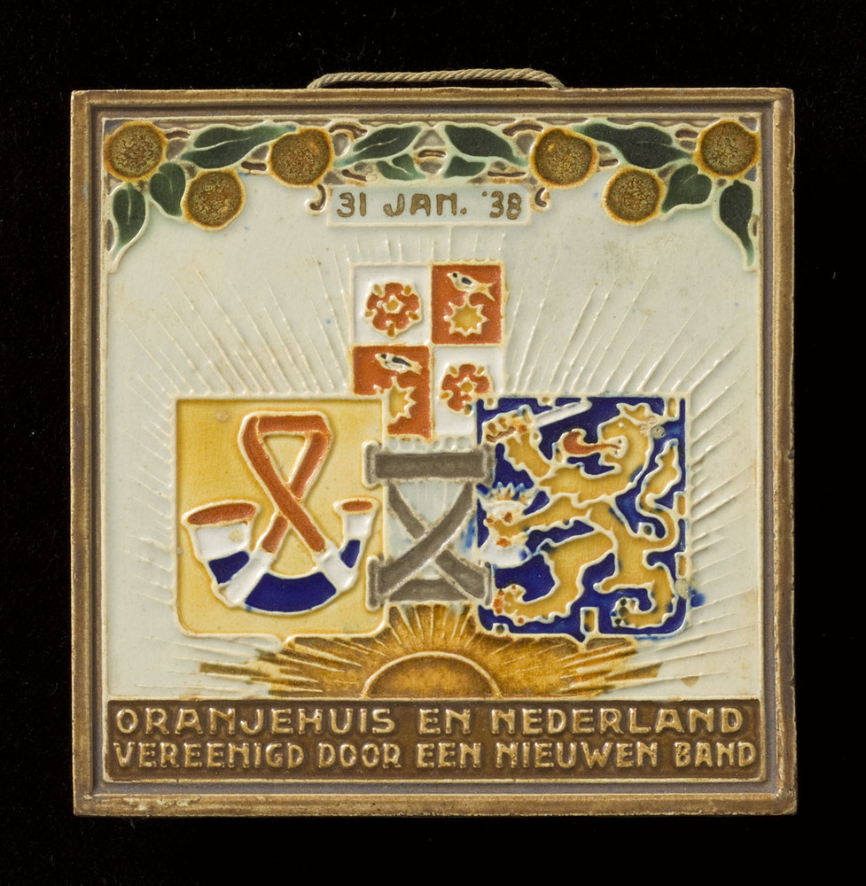Tegel in reliëf en transfer-techniek, voorstellende ...
