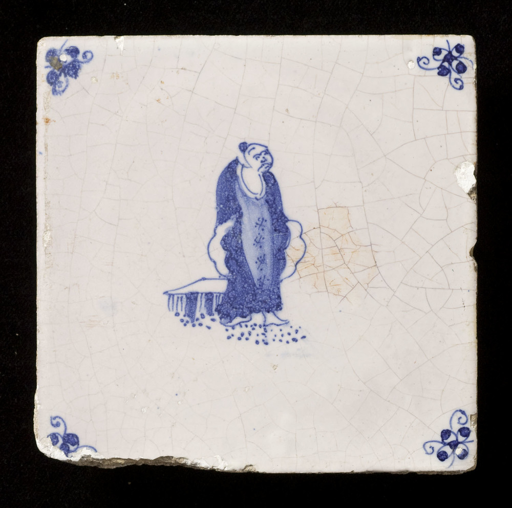 Tegel van keramiek, tinglazuur, voorstellende Chinee...