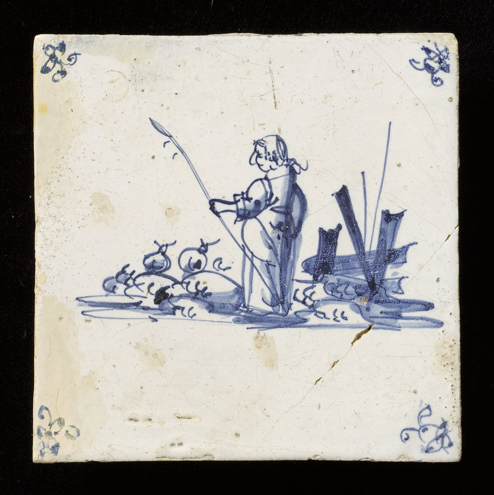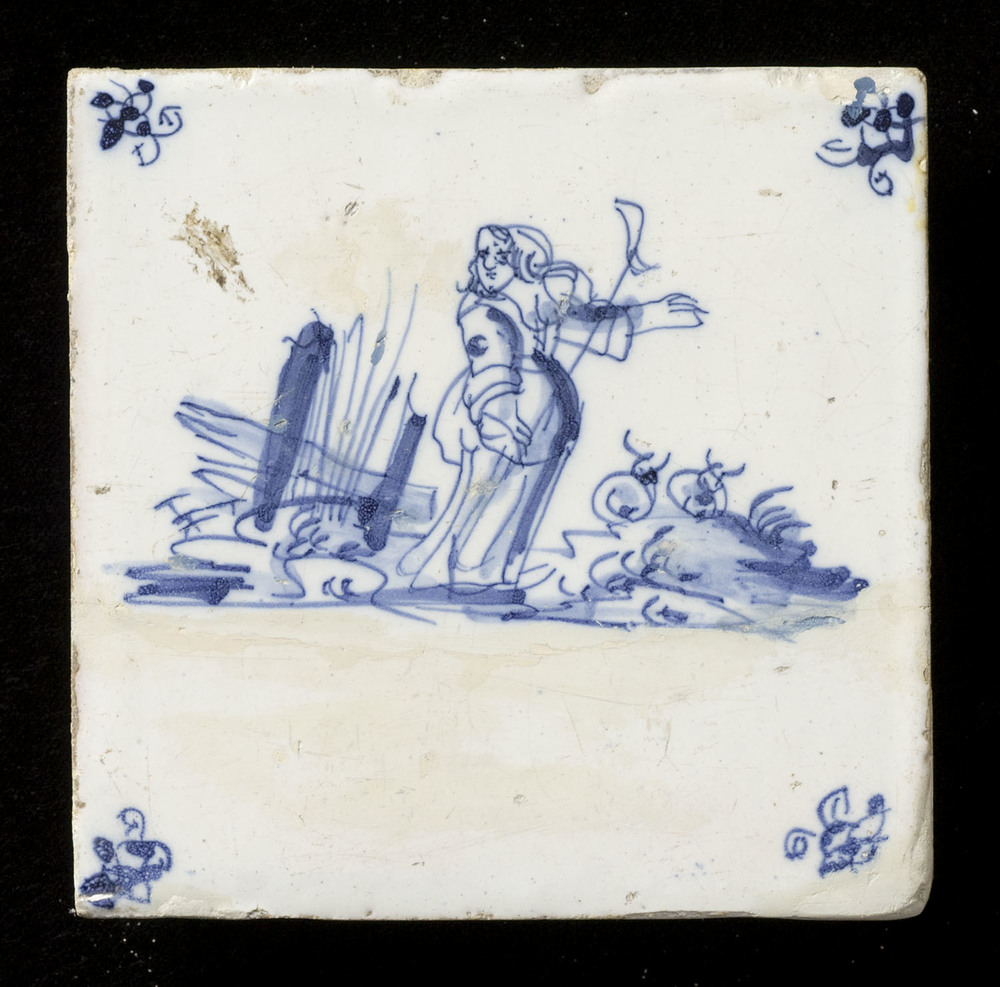 Tegel van keramiek, tinglazuur, voorstellende herder...