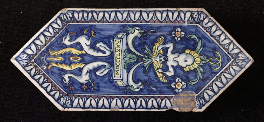 Tegelveld van keramiek, tinglazuur, voorstellende ee...