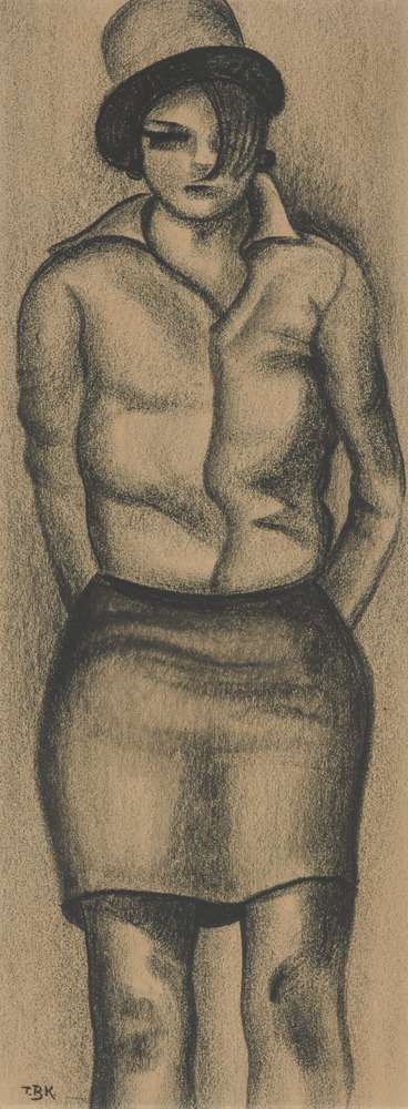 Tekening van een jonge vrouw met hoed