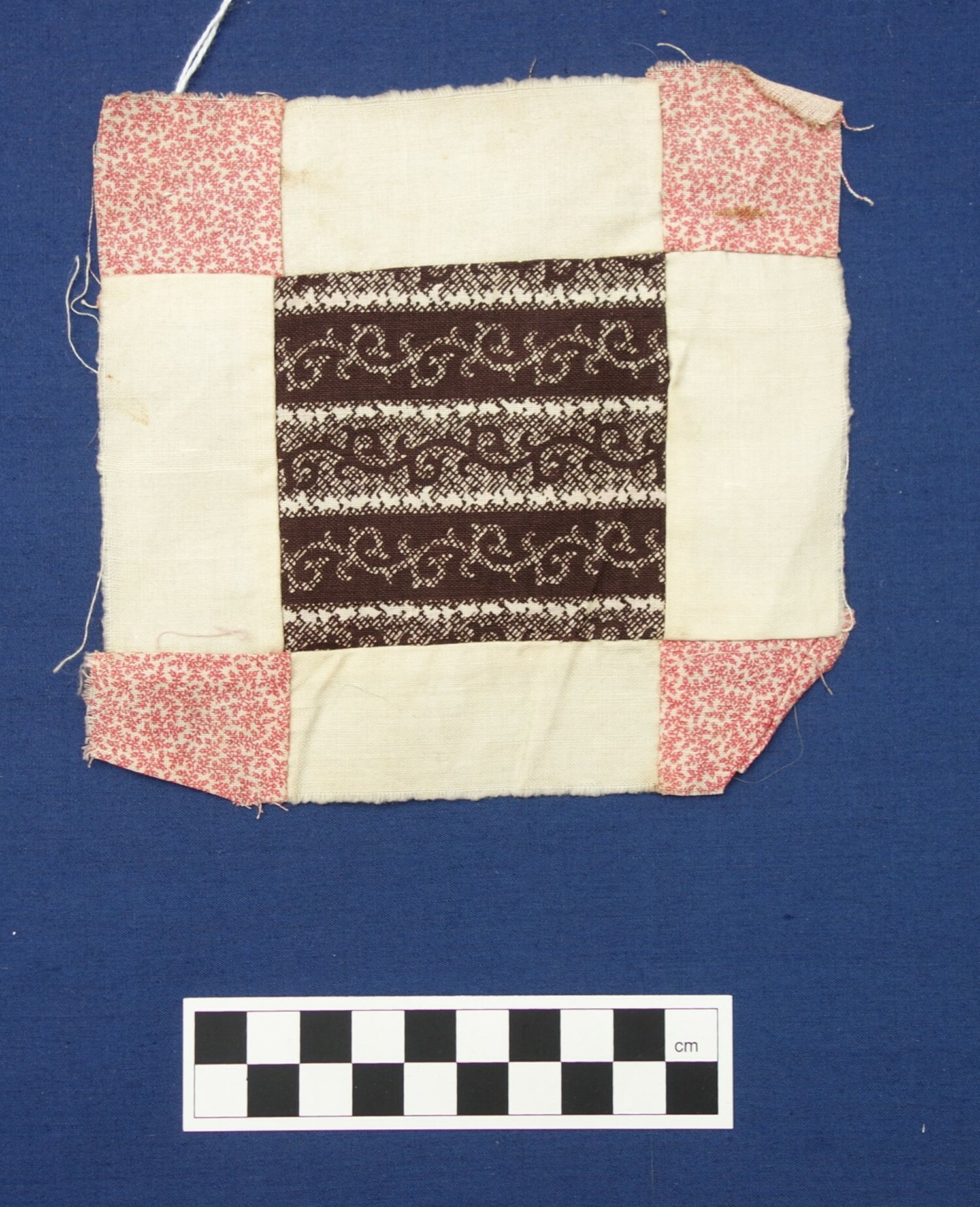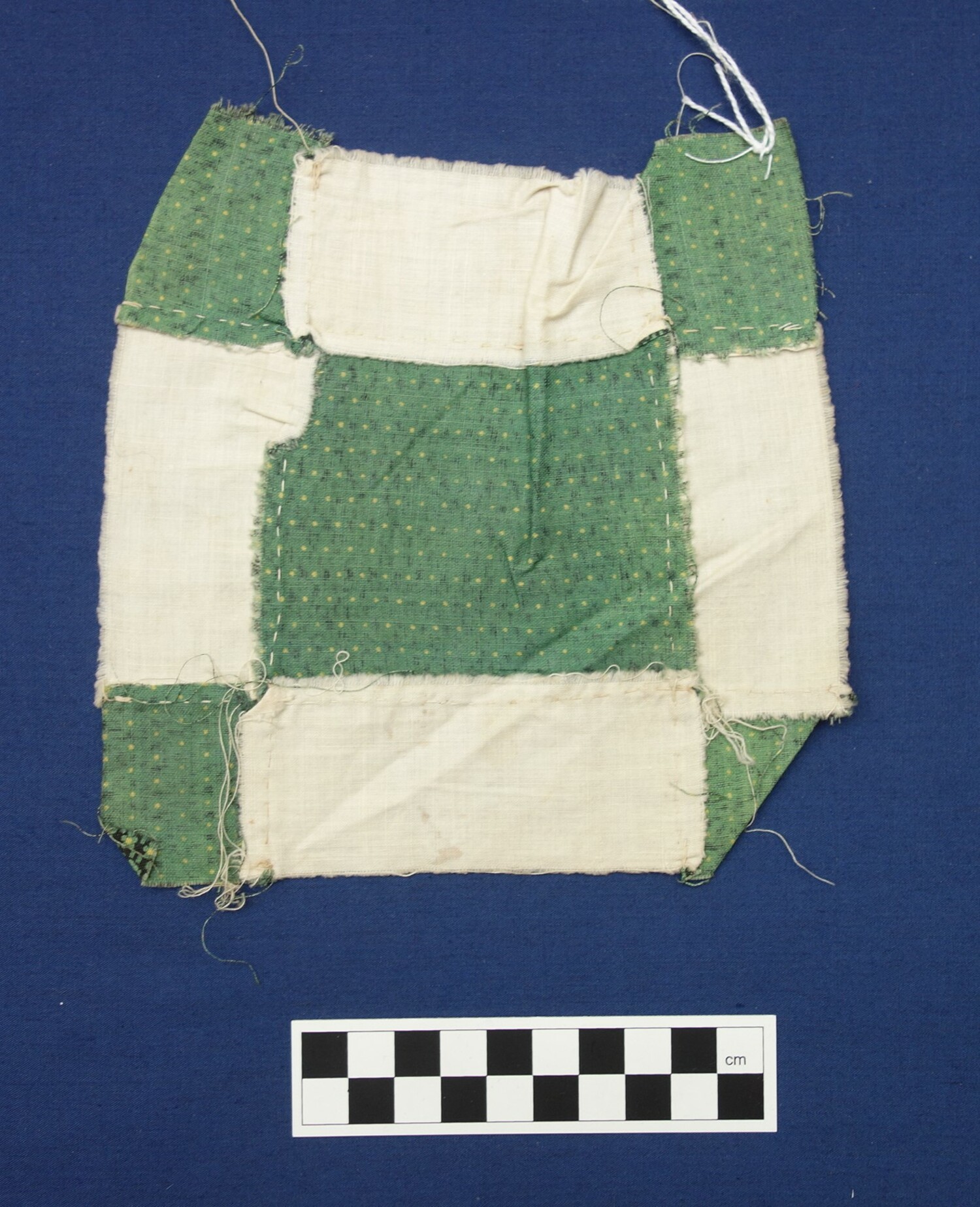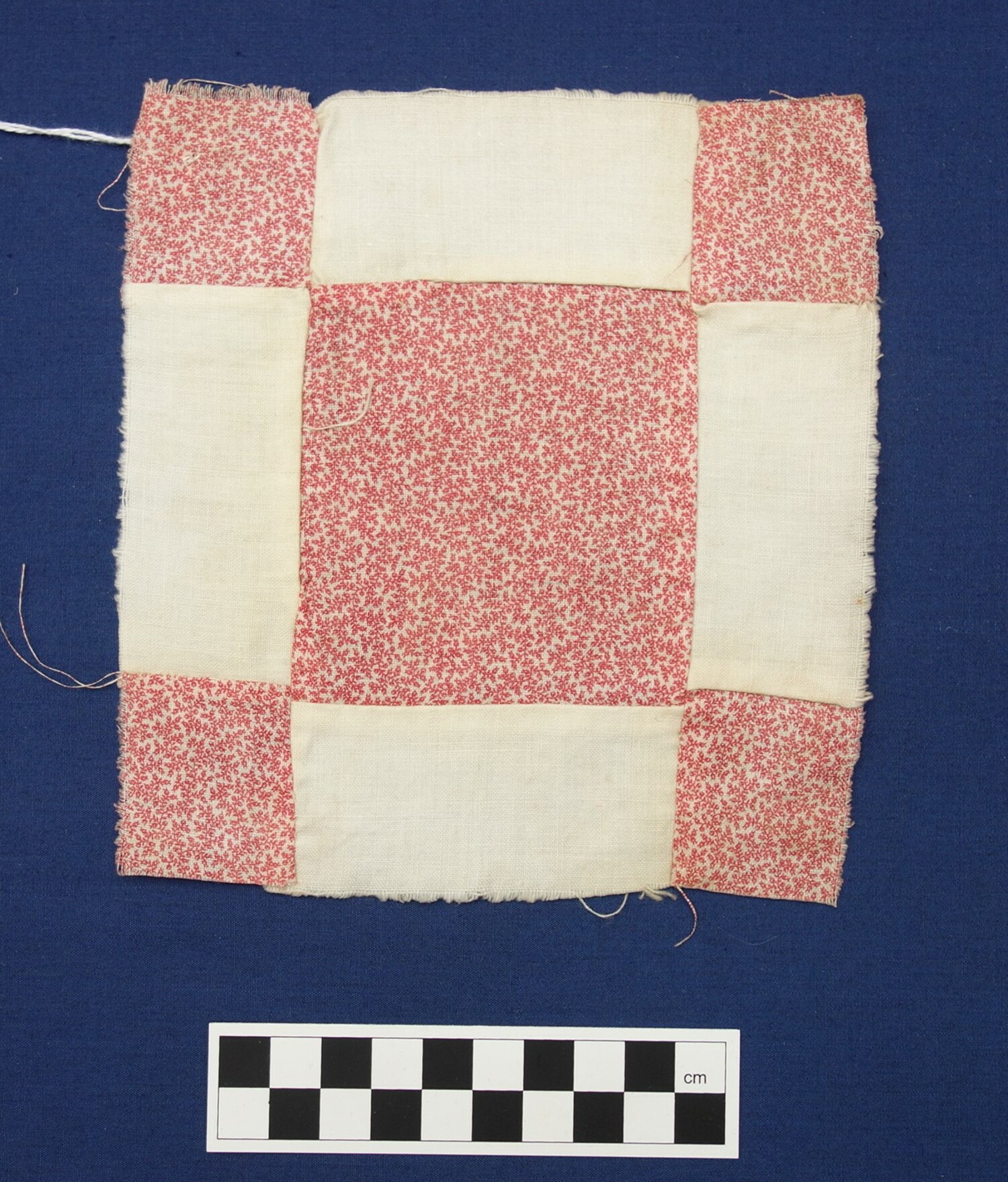 Factory woven and printed cloth hand stitched (running stitch) pieced (34)