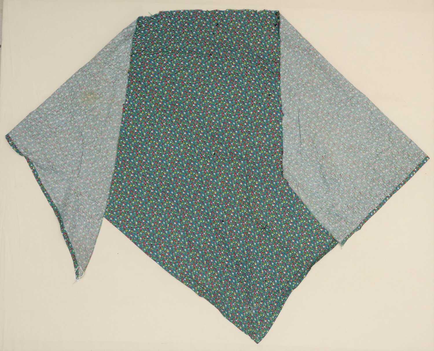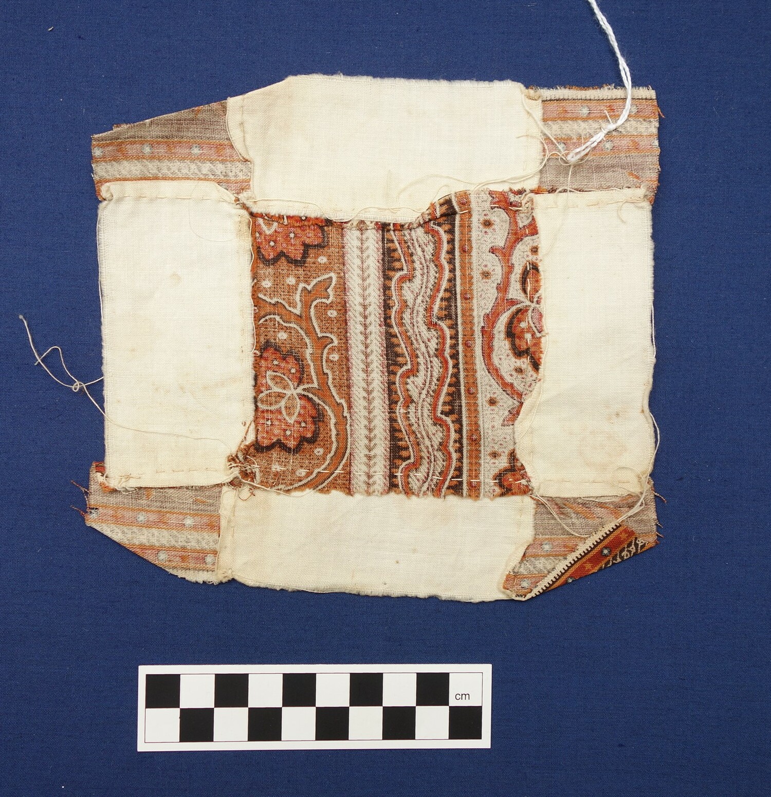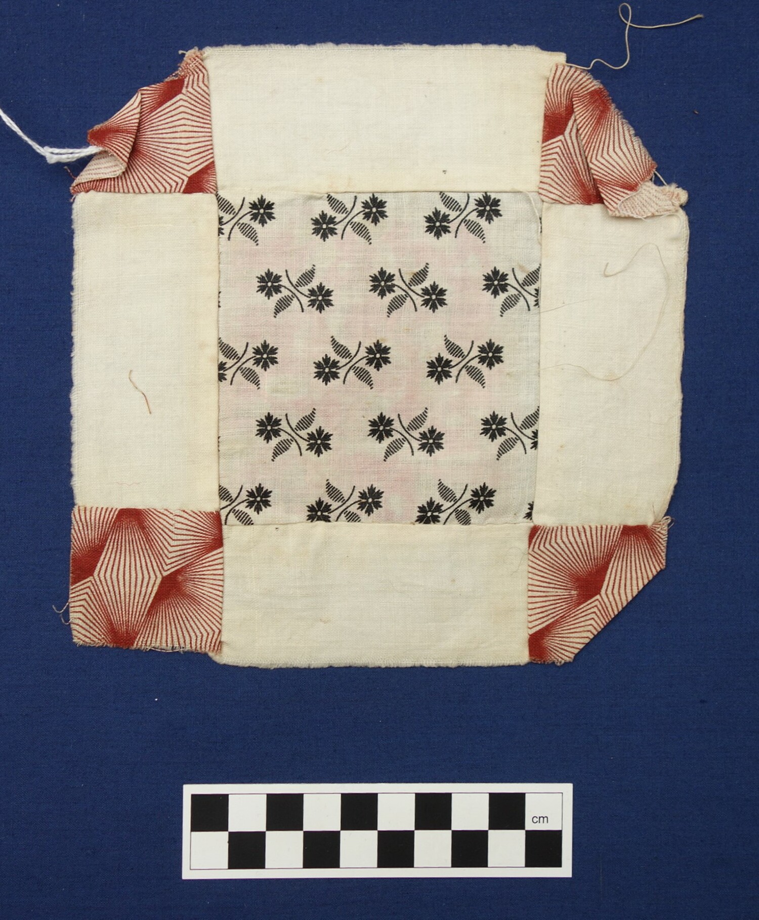 Factory woven and printed cloth hand stitched (running stitch stem stitch) pieced (1)