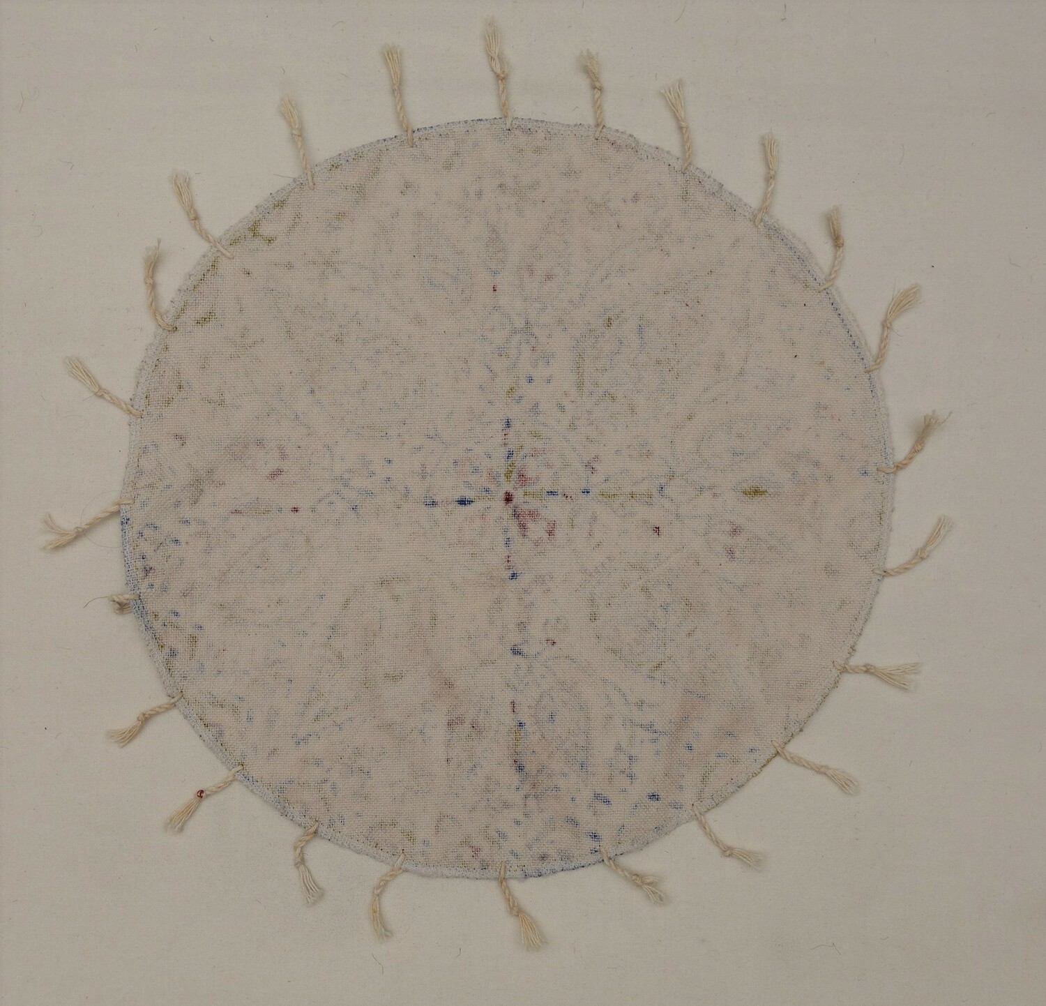 Factory woven and printed cloth hand embroidered (cross stitch) (1)