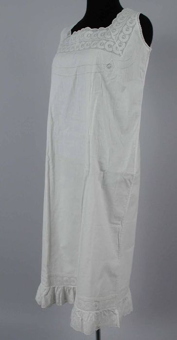 Lange witte katoenen onderjurk met broderiekant en h...