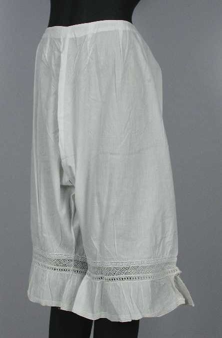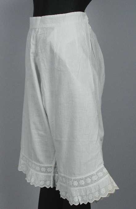 Witte onderbroek met pijpen, afgebiesd met broderierand