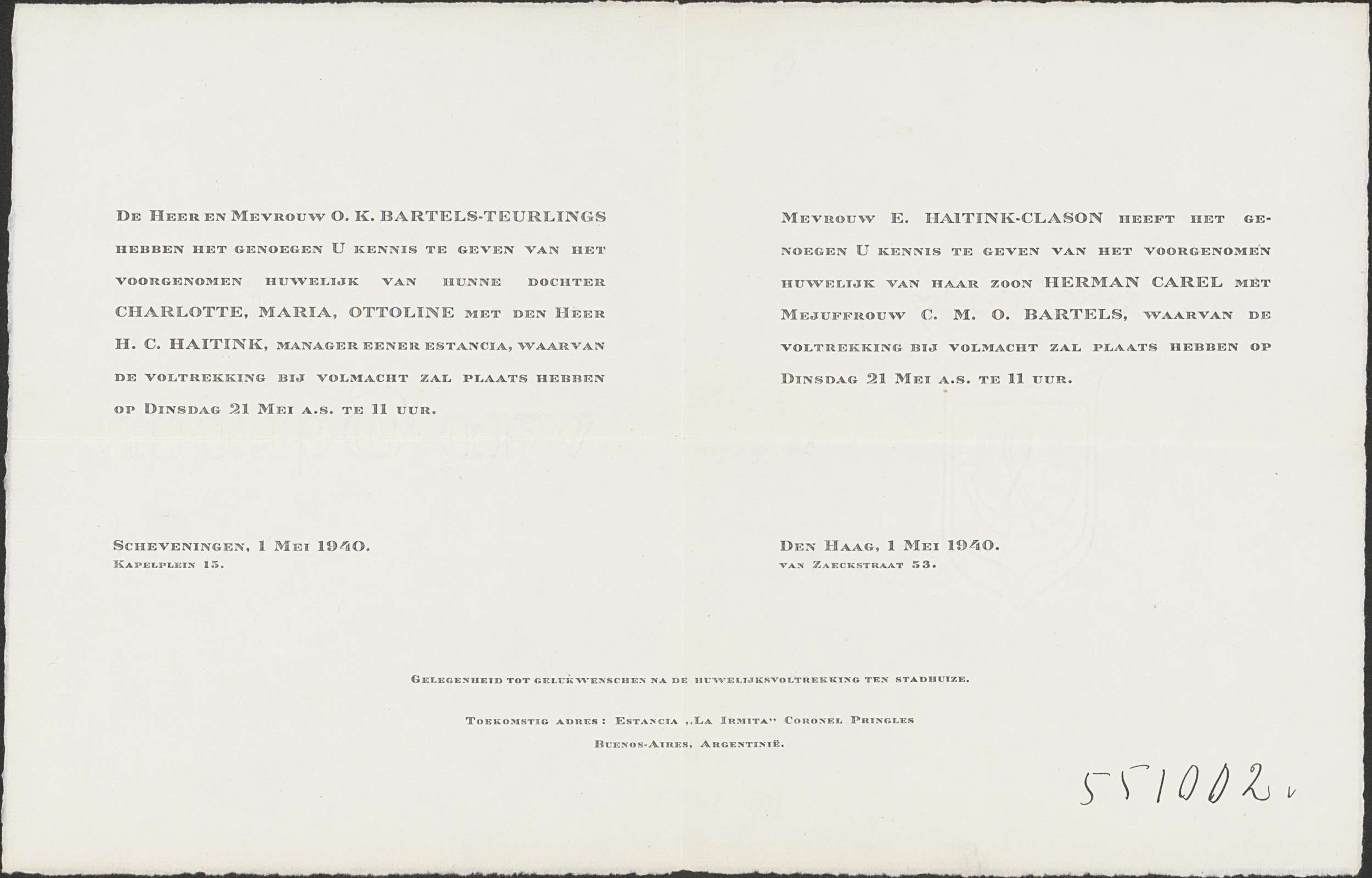 Aankondiging van het huwelijk bij volmacht van Charl...