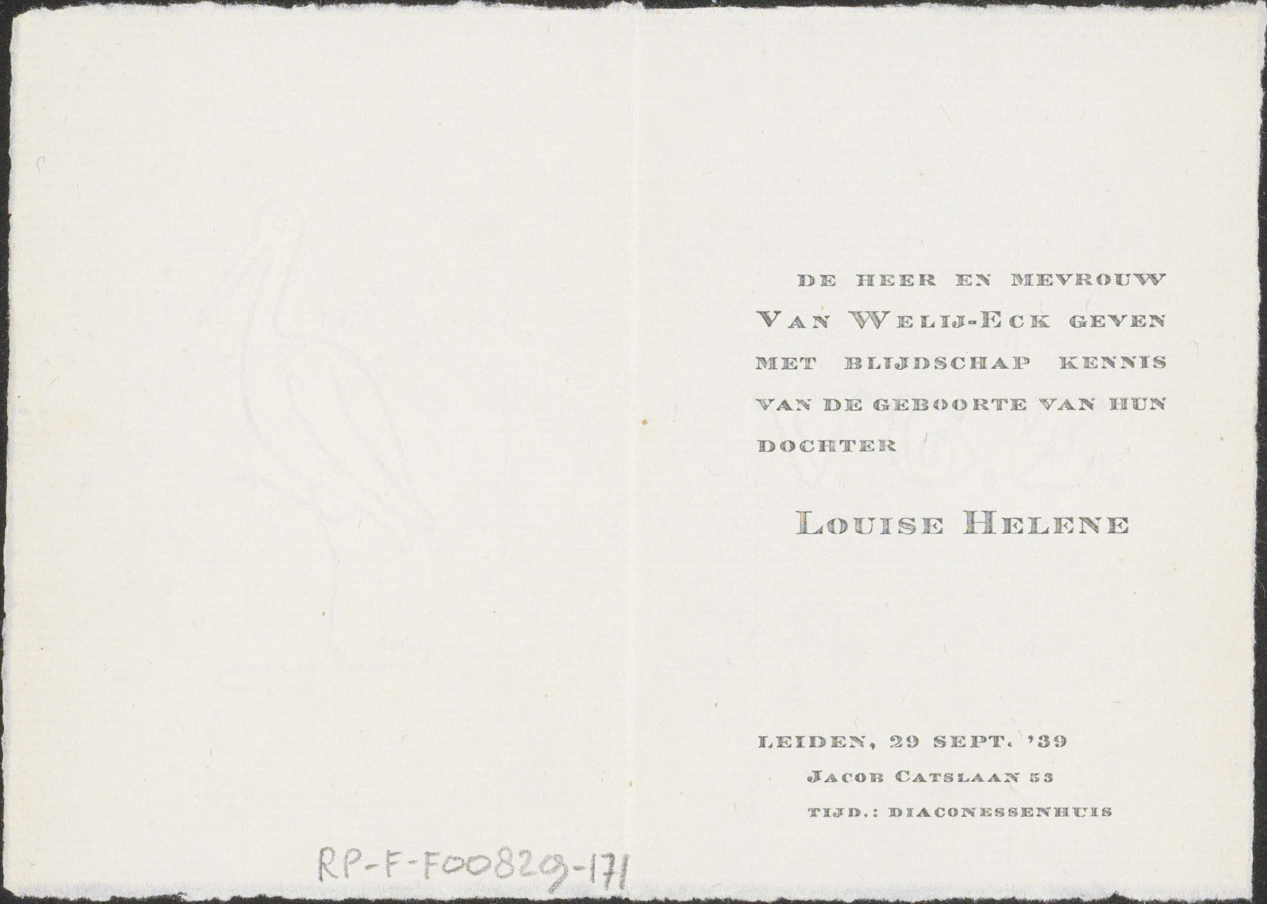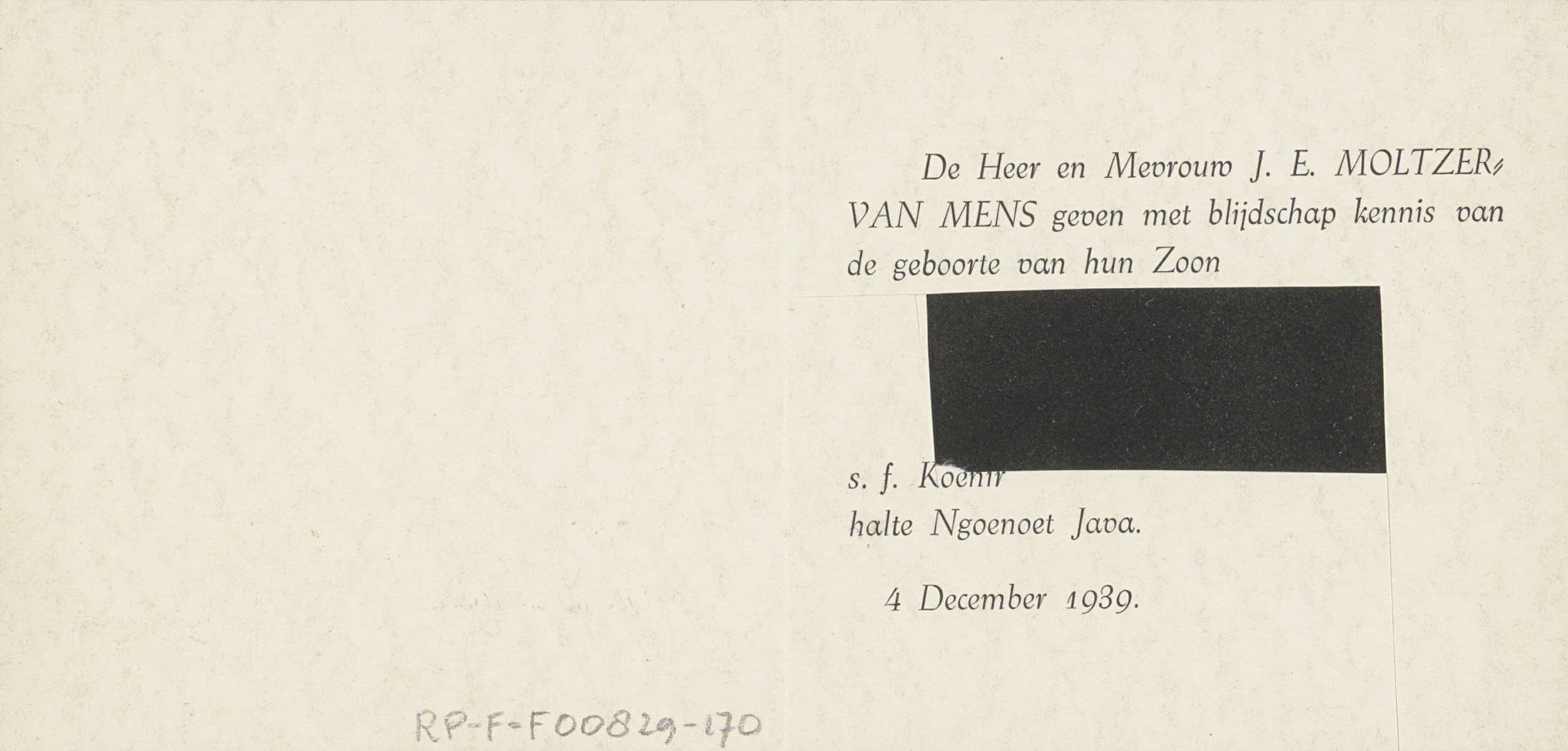 Geboortekaart (deels uitgeknipt) van een jongen gebo...
