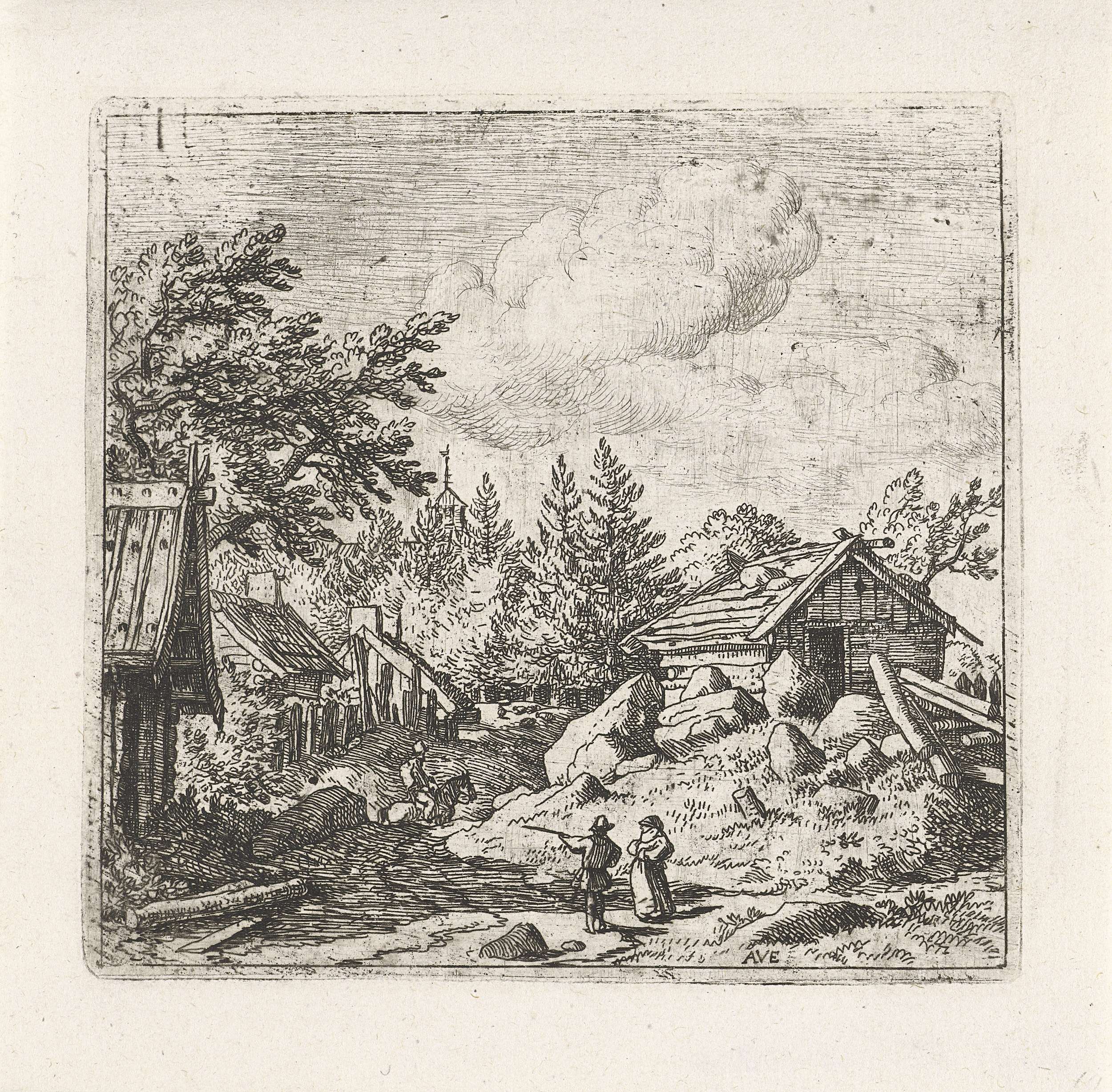 Gehucht met man op paard