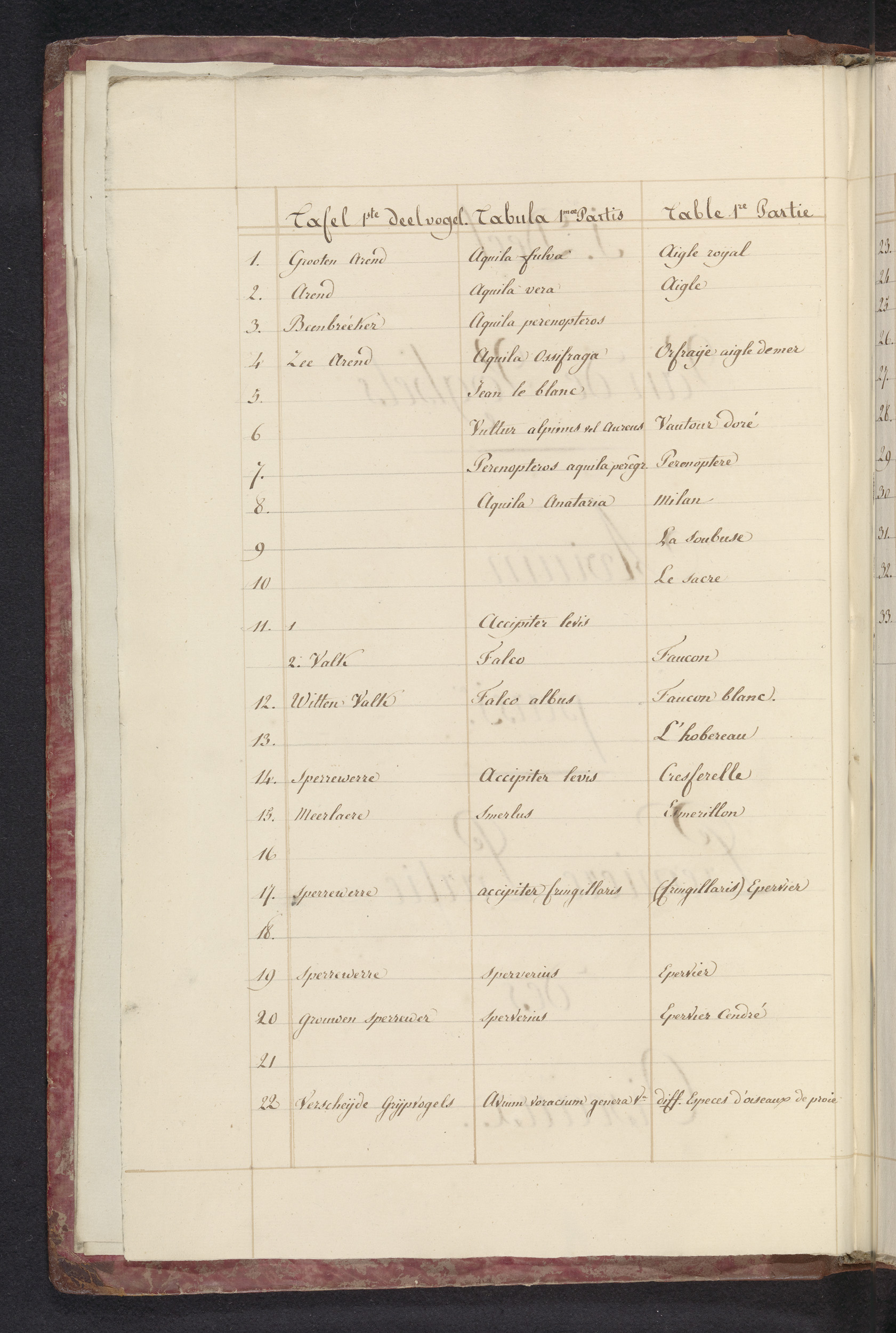 Lijst van vogels in het eerste deel van de vogels