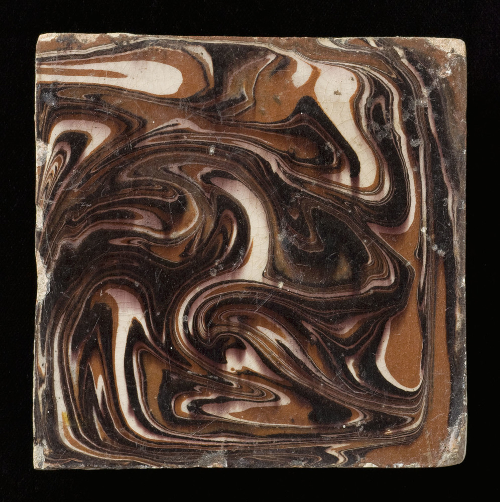 Tegel, voorstellende gevlamde tegel, ca. 1700-1900
