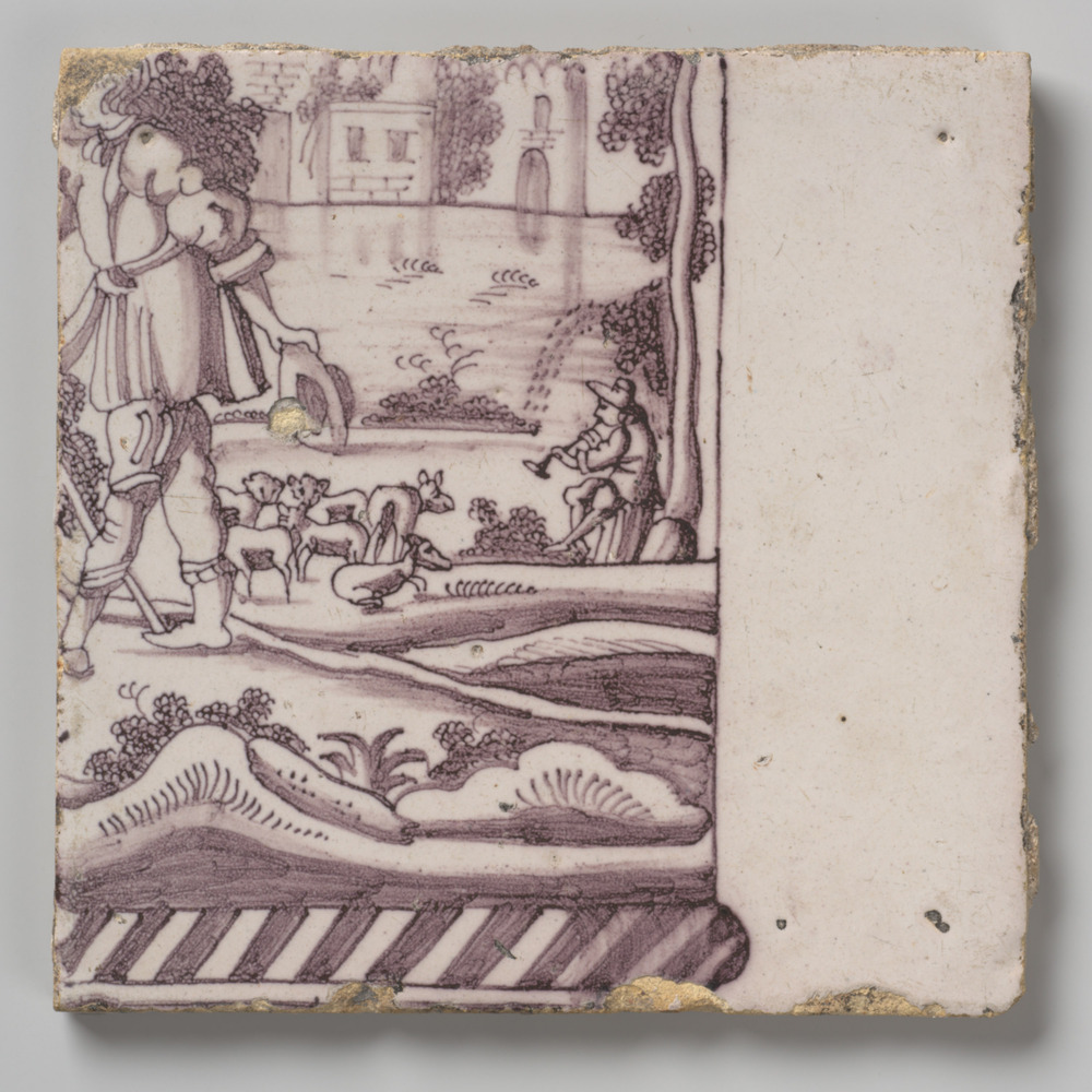 Tegel van keramiek, tinglazuur, voorstellende een la...